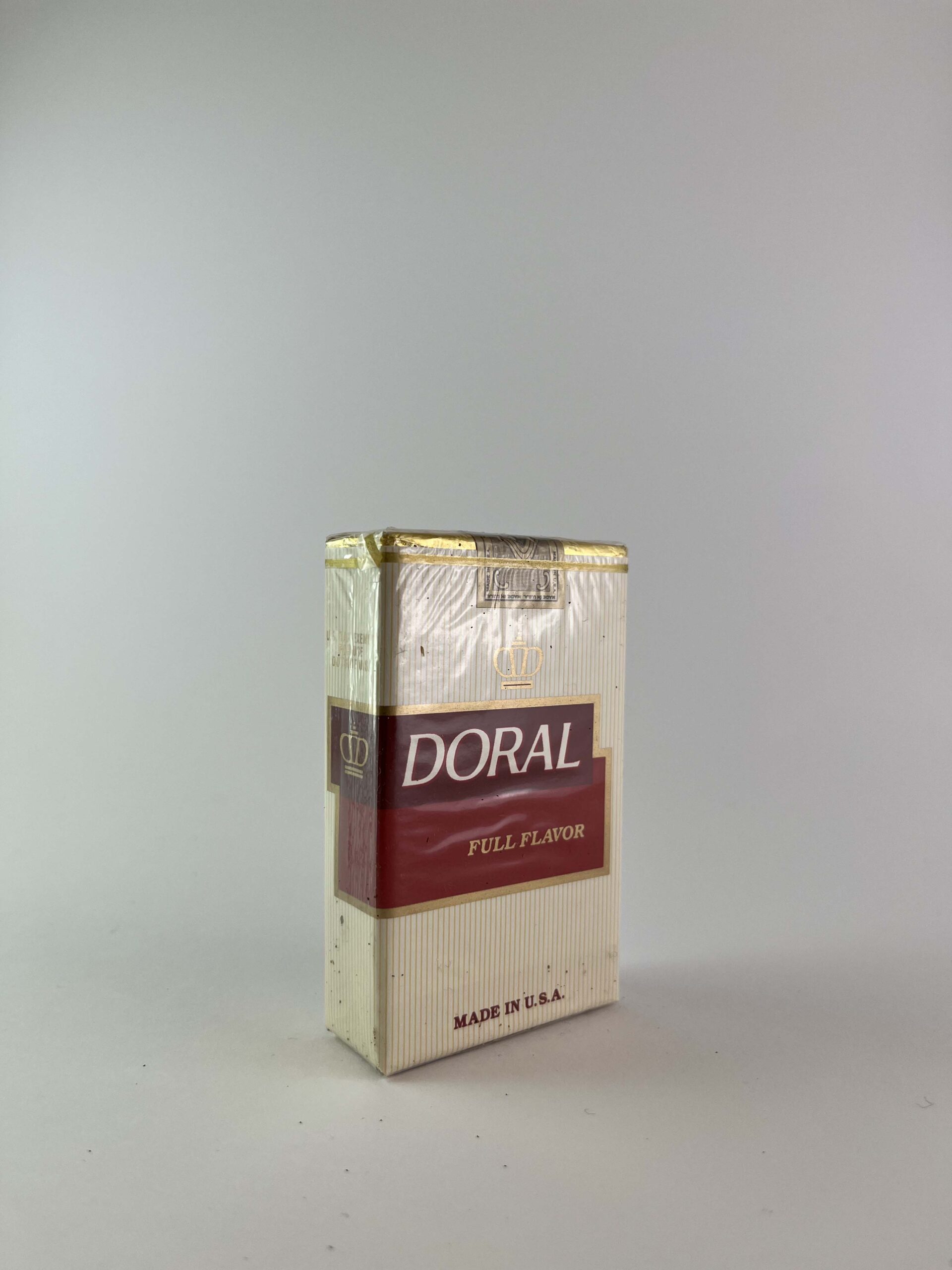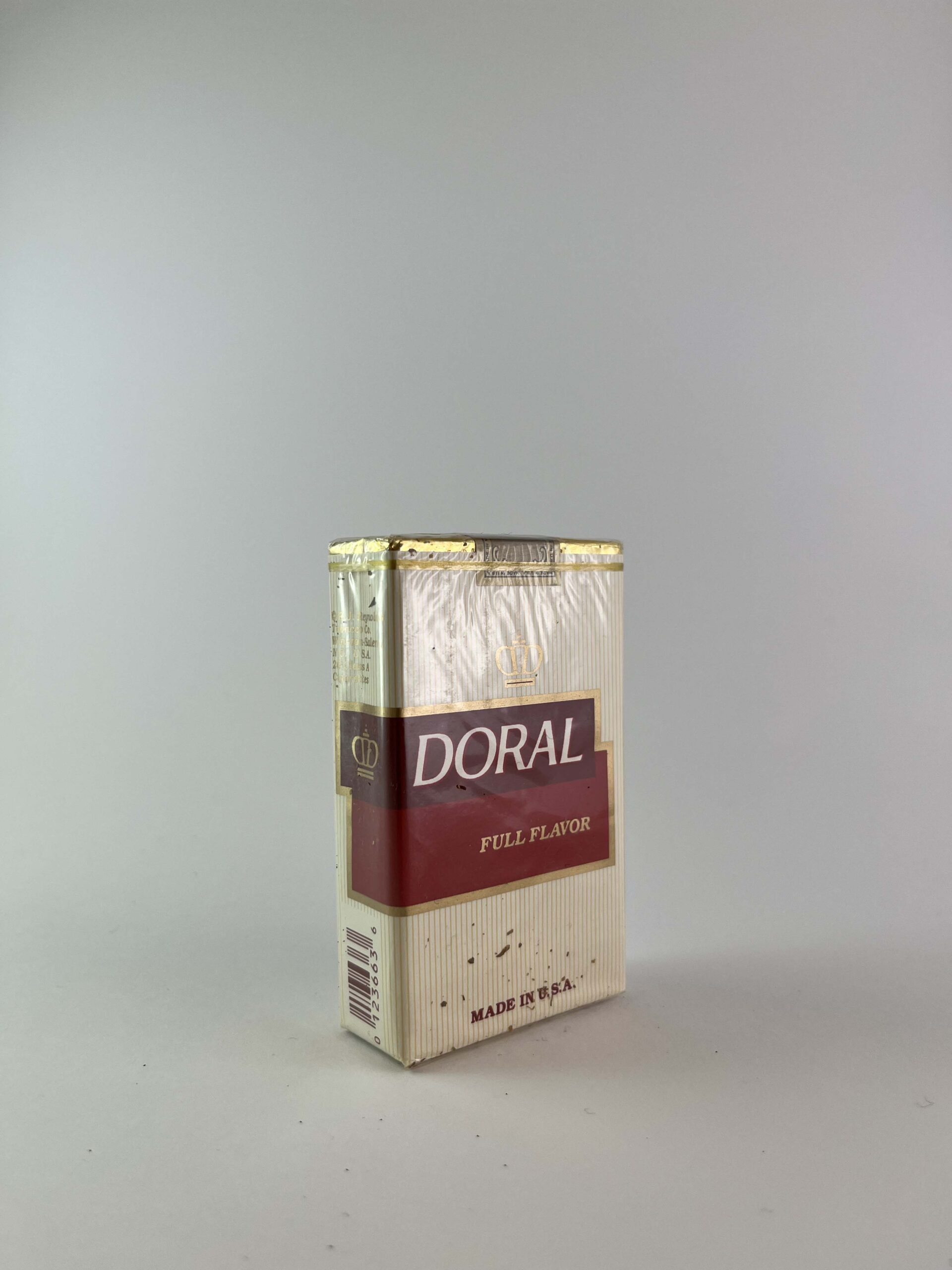 Description: DORAL's "Full Flavor" cigarette pack features classic design elements with a red and gold color combination that symbolizes a strong and full flavor experience. The pack has a simple yet elegant style, with the brand and country of manufacture clearly visible. This brand is aimed at consumers who prefer a richer flavor.