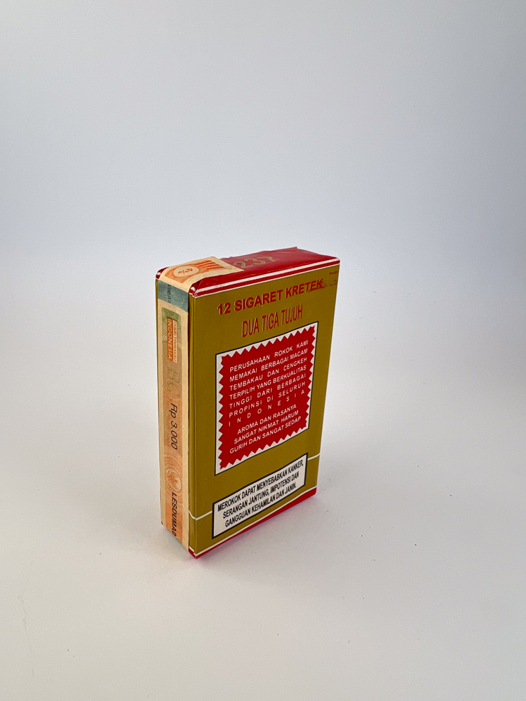 Collectible value: Average-good. Dua Tiga Tujuh is not a widely exported brand, so packets are rare. This is a great example of local kretek A small town manufacturer's production with a typical, authentic late 1980s design. Valuable to collectors due to its preserved film and clear regional origin.