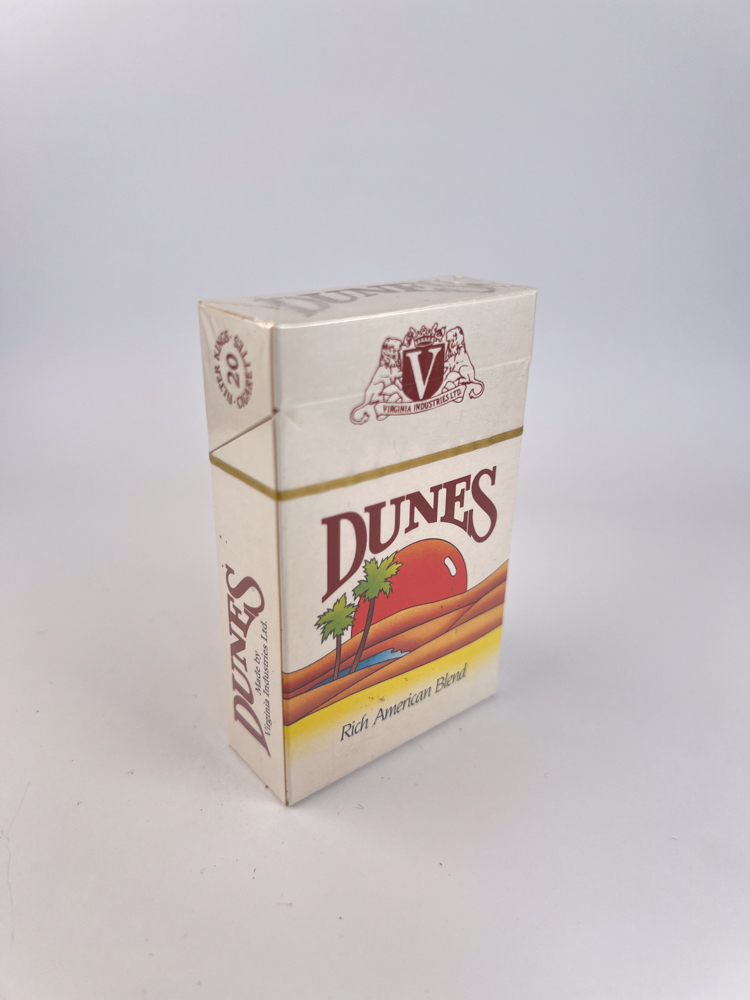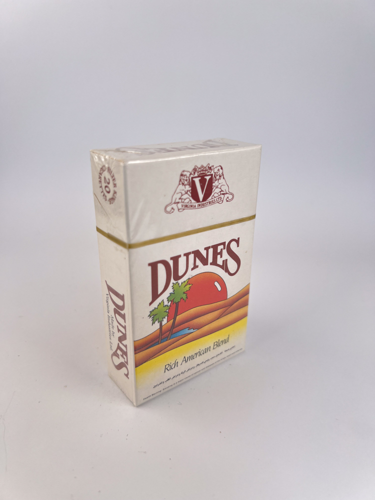 „"„Dunes“" - a classic cigarette brand for the Middle East region, produced „Virginia Industries Ltd.“ (headquartered in Dubai). This brand was created to convey American mix quality adapted to the local market, which at the time was looking for products with a Western image.