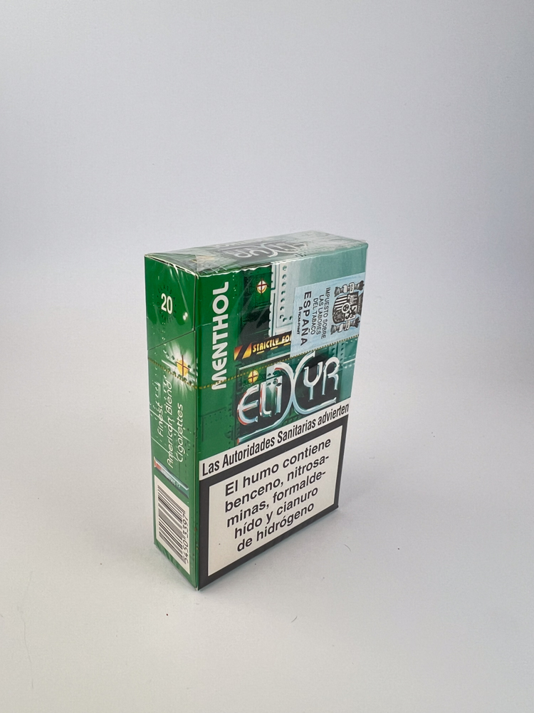 Collectible value: Average. Elixyr is a relatively young brand, emerging after the early 2000s and mainly distributed in Spain, Belgium and Germany. While it is not a vintage or extremely limited edition product, menthol variants are becoming increasingly rare following the ban on menthol cigarettes in many EU countries (post-2020), so these packs take on additional historical value.