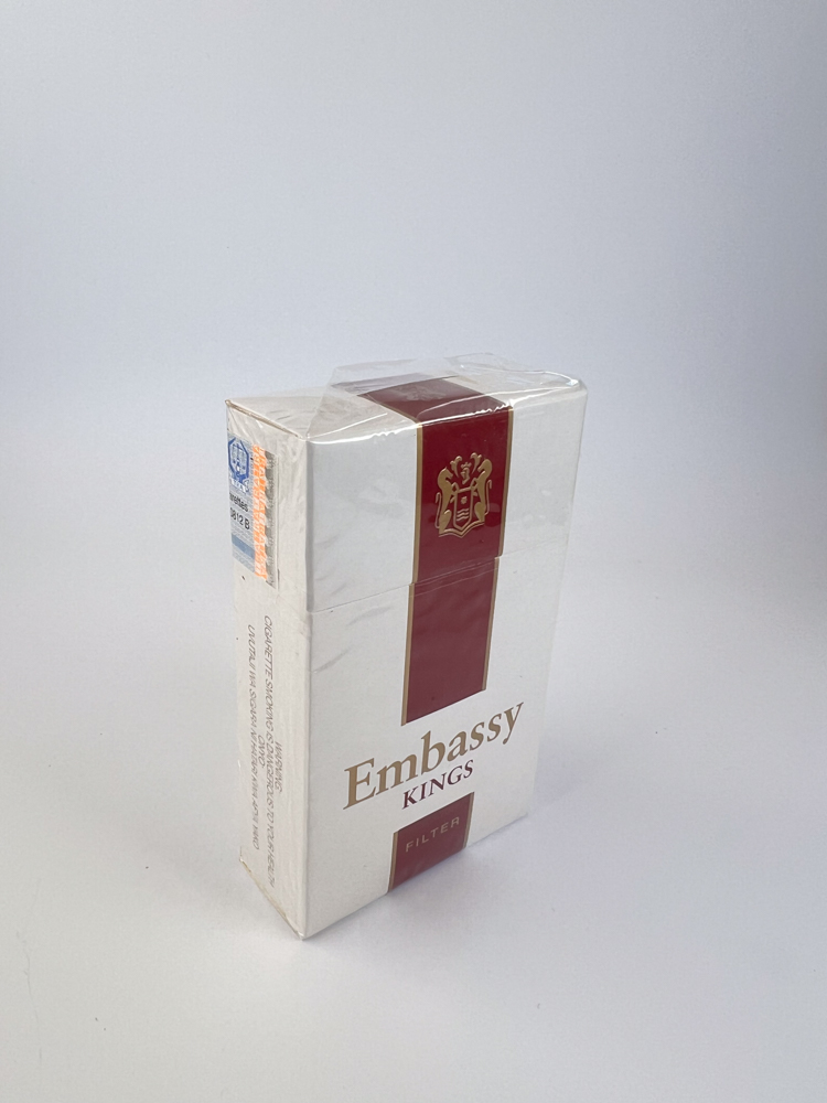 • Collectible value: Medium-high. Embassy Kings Tanzanian issues are rare, especially with the cellophane and excise sticker intact. They are prized by collectors for their unusual production locations (Africa) and a distinctly British design that contrasts with its regional origins.