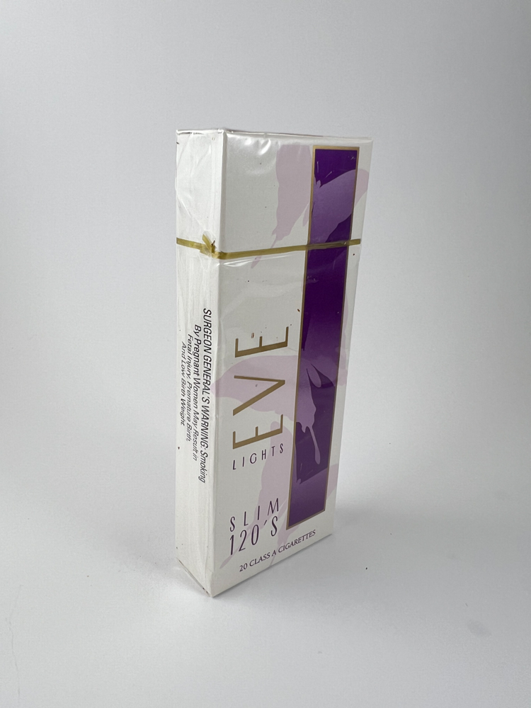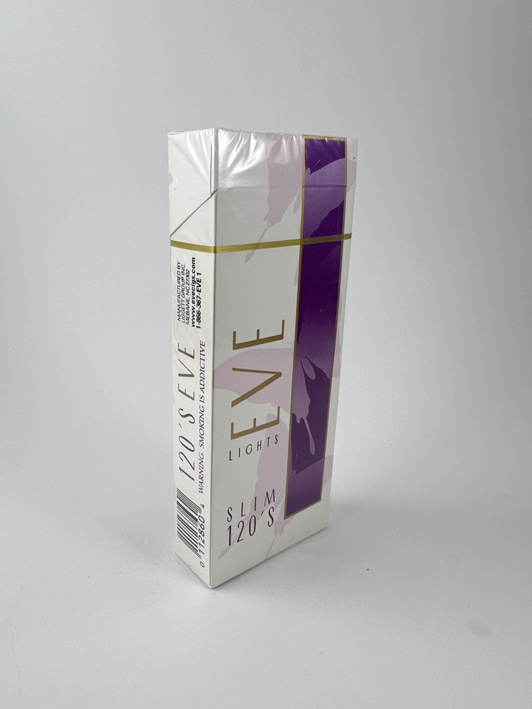 Historical data and popularity: Eve was one of the first cigarette lines in the US marketed specifically towards a female audience. The 120mm slim pack is highly sought after by collectors, especially in Europe, where it was not widely available.