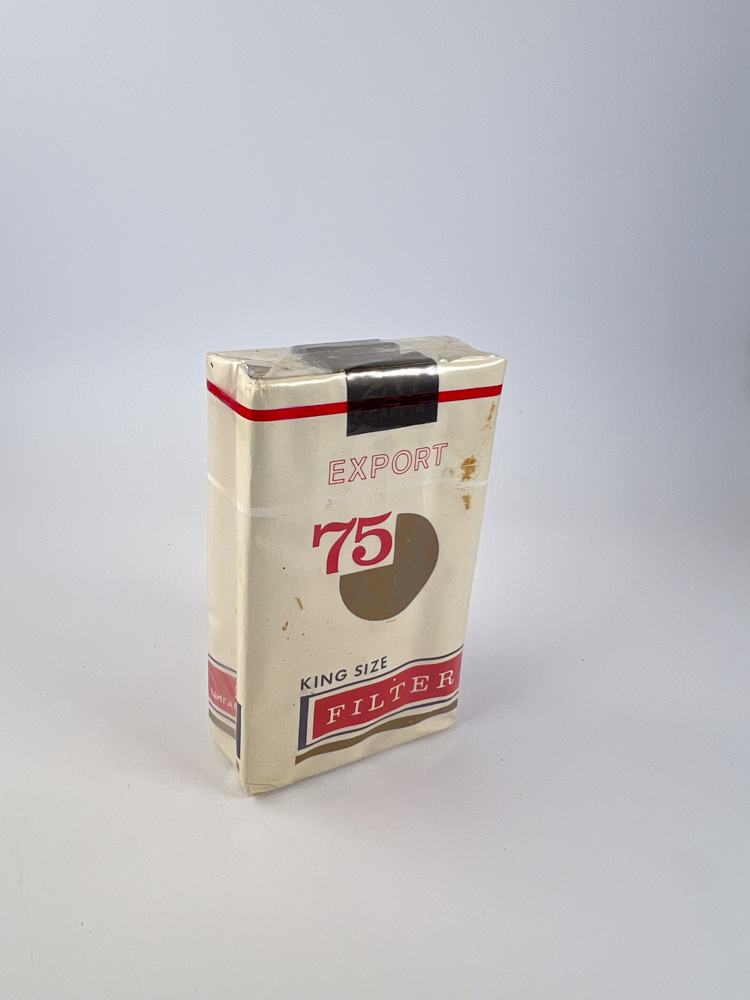 Collectible value: Medium. Such "Export 75" packages are most commonly found among Eastern European collections, but with the surviving film and bilingual inscription they are less common.