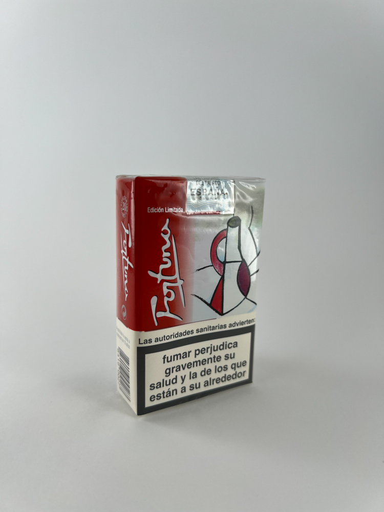 Fortuna is one of the most famous Spanish cigarette brands, belonging to the Altadis group. This particular edition is „Limited Edition“ (limited edition) – has an exclusive design: a modernist artistic drawing reminiscent of the Spanish avant-garde school. The combination of red and white with a stylish logo conveys the national Spanish identity. The packaging contains classic warnings in Spanish („Fumar acorta la vida“, „Fumar perjudici gravemente…“), as well as an authentic Spanish excise stamp. The package is preserved with a protective film, untouched.