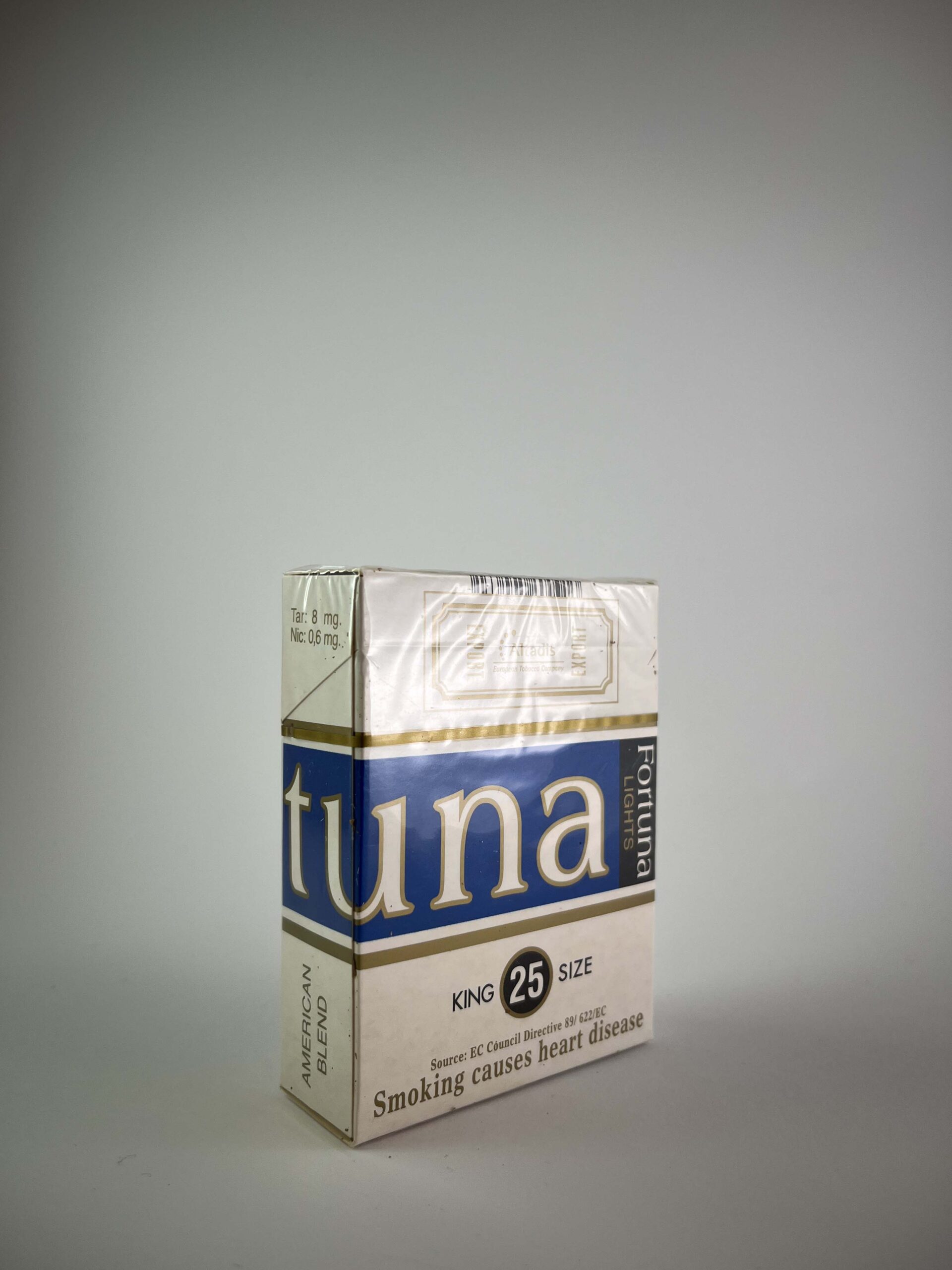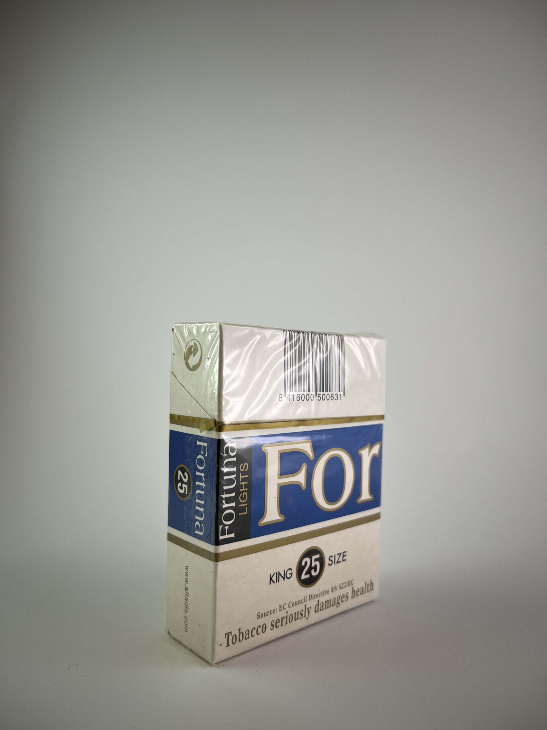 Fortuna Lights cigarečių pakelis yra išskirtinis savo dydžiu – jame telpa 25 cigaretės, kas yra daugiau nei įprasta rinkoje. Pakuotės dizainas modernus ir profesionalus, dominuoja balta spalva su mėlynais ir auksiniais akcentais, o ant šono matyti užrašas „American Blend“, nurodantis tabako mišinio tipą. Sveikatos įspėjimai pateikti anglų kalba, kas rodo, kad produktas buvo skirtas tarptautinei rinkai.