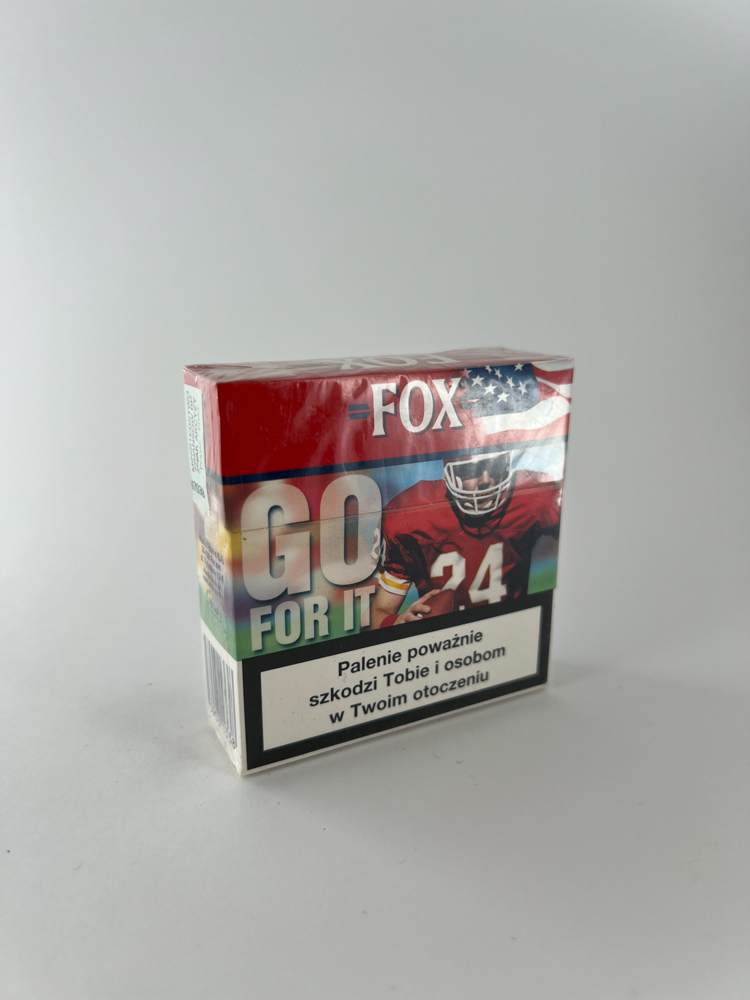 This is a limited edition cigarette pack from Poland, featuring a US sports theme - an American football player, the words "GO FOR IT" and US flag motifs. Unlike the vertical version, this one - horizontal format, which is very rare, even among special editions. On the back – sports and leisure attributes: a T-shirt, a watch, a speaker, and once again the US flag. This design is clearly focused on youth culture, sports and Western style.
