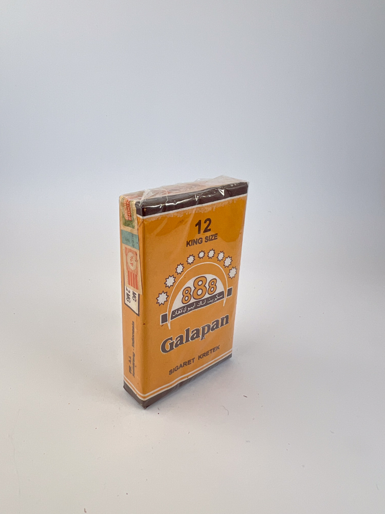 „Galapan 888 King Size“ – klasikinis Indonezijos kretek cigarečių pakelis, išsiskiriantis šiltu oranžiniu atspalviu ir minimalistine, tačiau išraiškinga kompozicija. Centre esantis ženklas „888“ apsuptas žvaigždžių vainiku, kuris sukuria tvirtumo ir pasitikėjimo simboliką. Skaičius „888“ dažnai siejamas su sėkme ir klestėjimu, todėl šis dizaino elementas atspindi Rytų Azijos kultūrinius motyvus, paplitusius Indonezijos tabako pramonėje.