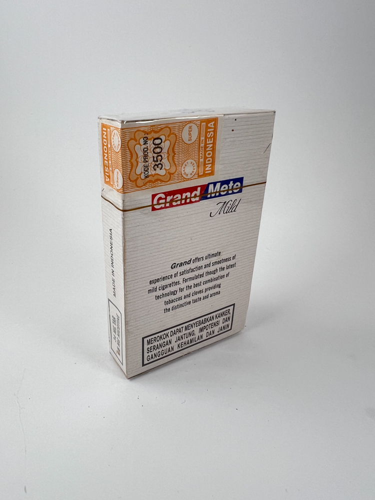 Historical data and popularity: „Mild“ tipo cigaretės Indonezijoje išpopuliarėjo XX a. pabaigoje, kai gamintojai pradėjo siūlyti švelnesnius gvazdikinių cigarečių variantus. „Grand Mete Mild“ buvo vienas iš nedidelių prekės ženklų, labiau orientuotų į vietinę rinką, todėl tarptautiniuose aukcionuose jis sutinkamas retai.