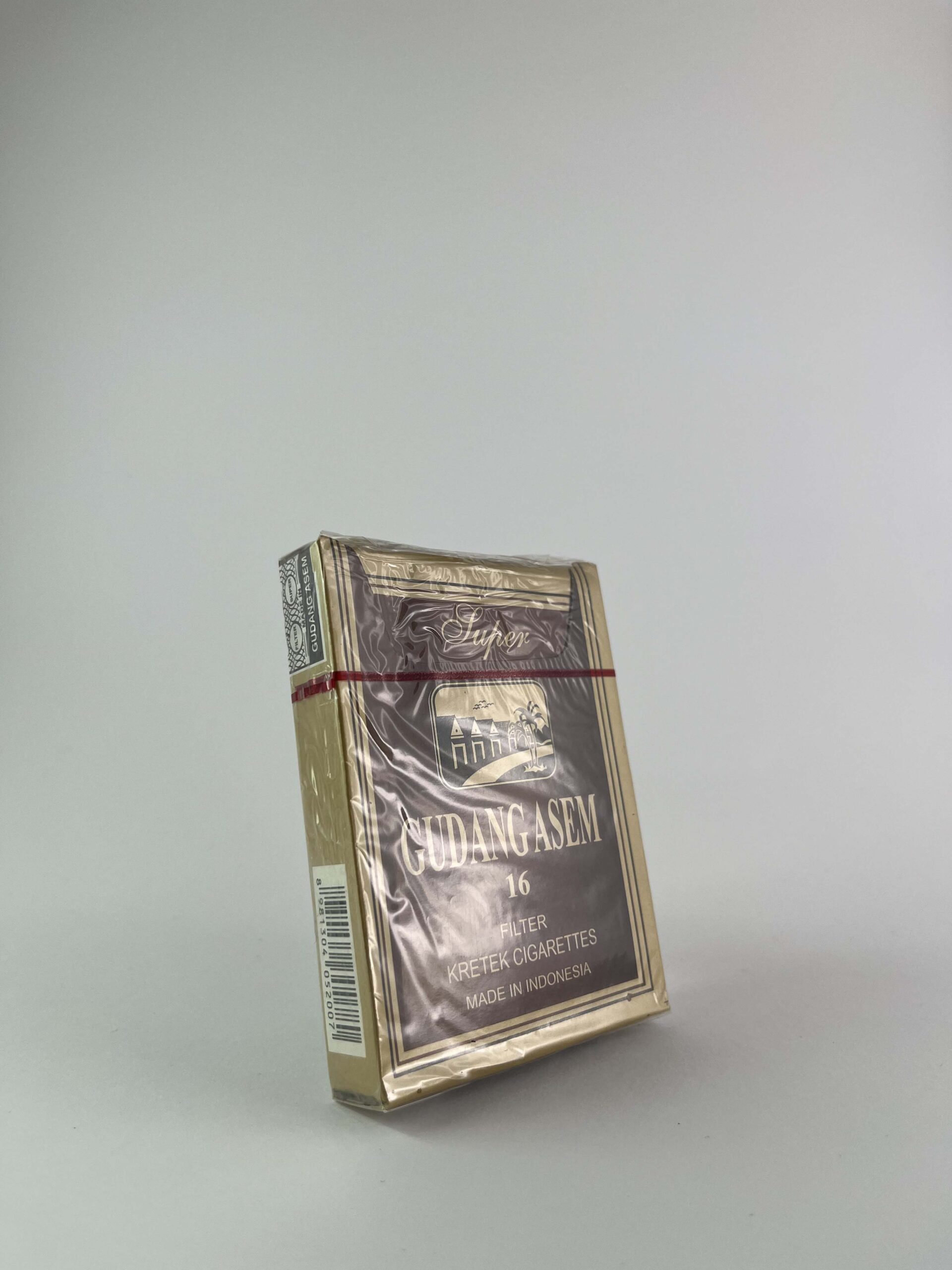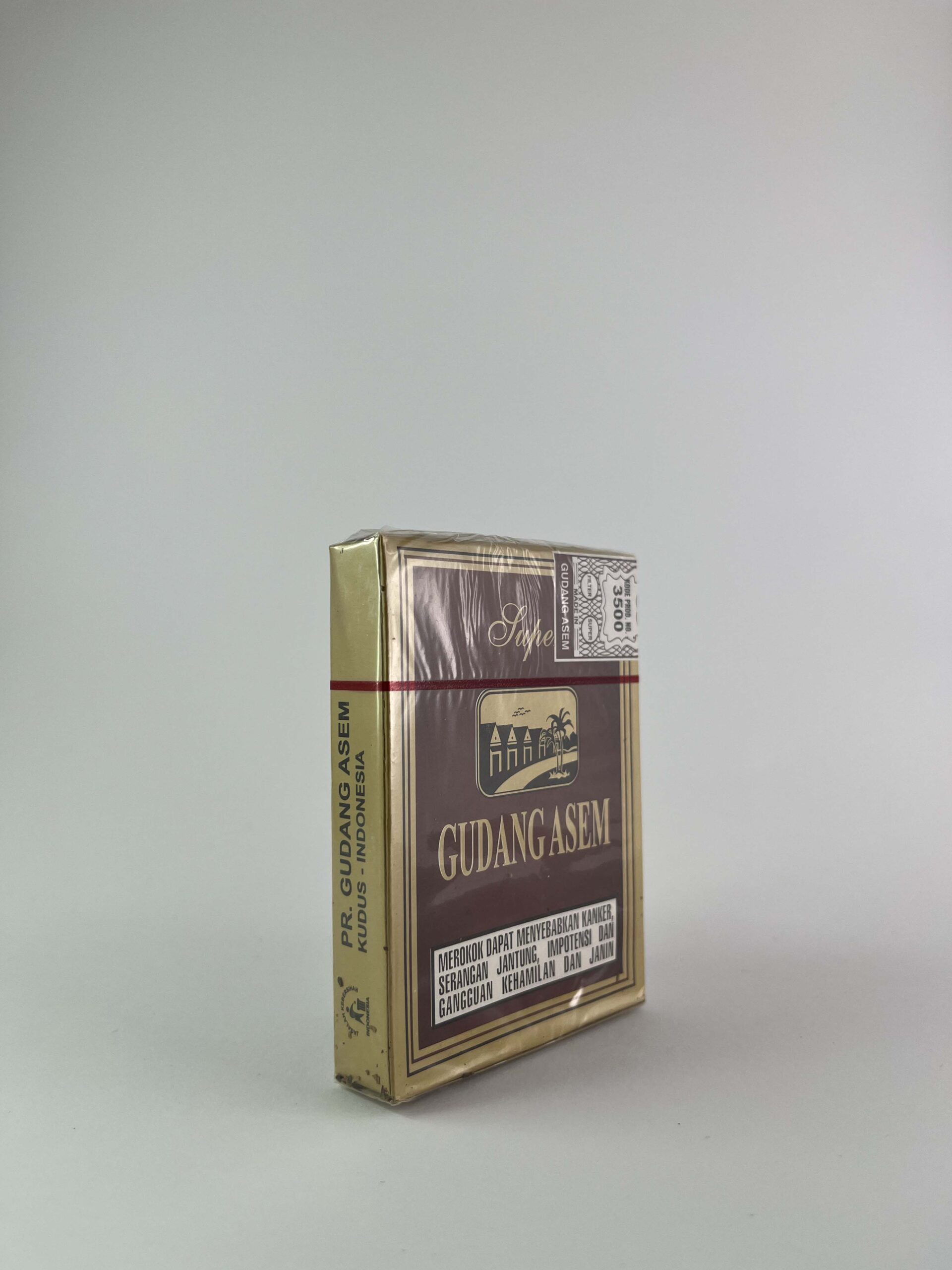 Description: Gudang Asem yra unikalus Indonezijos prekės ženklas, išsiskiriantis savo tradicine „kretek“ cigarečių kategorija, kurioje tabakas maišomas su gvazdikėliais. Šis pakelis turi prabangų, tamsiai rudą ir aukso spalvų dizainą, atspindintį prekinio ženklo ilgaamžiškumą ir kokybės pabrėžimą. Įspėjimas apie rūkymo žalą yra akivaizdžiai matomas apatinėje dalyje, kas yra įprasta Indonezijos cigarečių pakeliams.