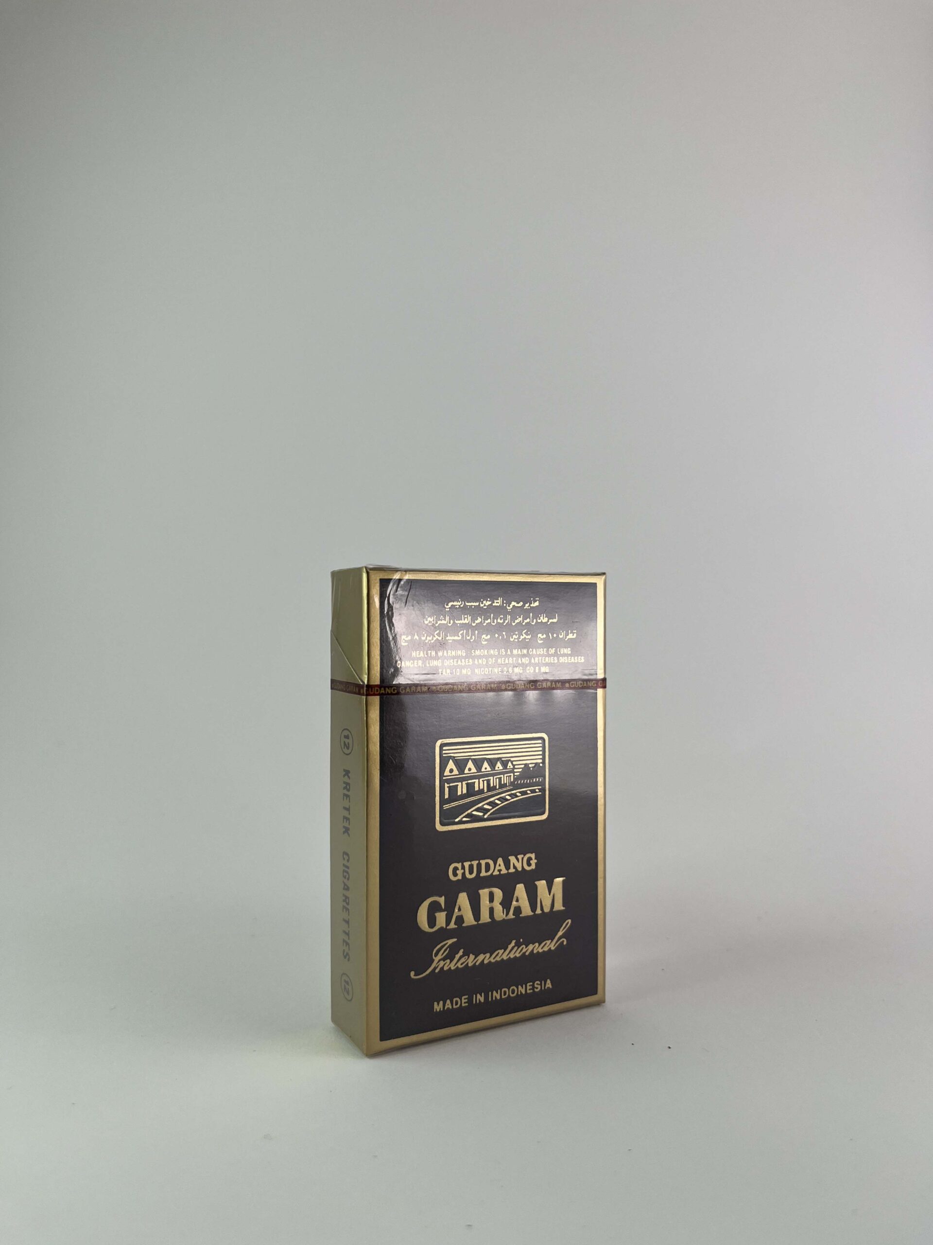 Aprašymas: Šis Gudang Garam „International” cigarečių pakelis išsiskiria elegantišku auksiniu dizainu, kuris pabrėžia prabangos ir išskirtinumo jausmą. Gudang Garam yra gerai žinomas prekės ženklas Azijoje, garsėjantis aukštos kokybės kretek cigaretėmis, pagamintomis su gvazdikėlių ir tabako deriniu. Ant pakuotės aiškiai nurodyta kilmės šalis, Indonezija, kuri garsėja kretek cigarečių gamyba.