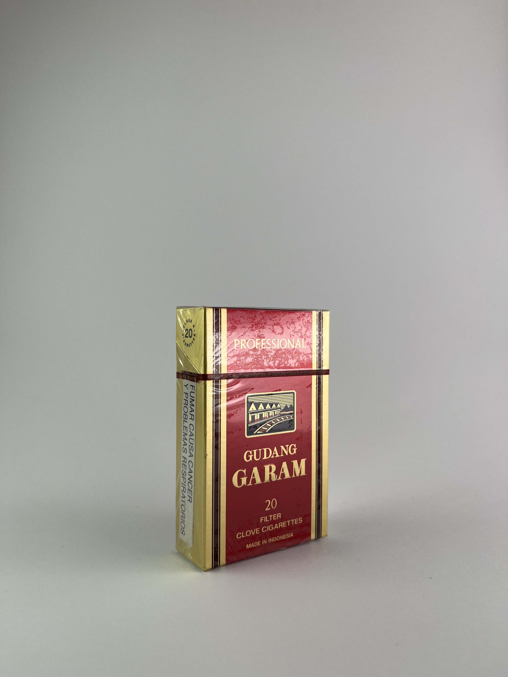 Description: This pack of Gudang Garam Professional cigarettes is a traditional example of Indonesian kretek cigarettes. Kretek cigarettes, which are made with the addition of cloves, are particularly popular in Indonesia. The packaging is distinctive, the combination of red and gold colors gives it a luxurious feel, and the cigarettes inside have a rich and aromatic taste due to the mixture of cloves and tobacco. Gudang Garam is a well-known brand, valued in Indonesia and internationally for its high quality.