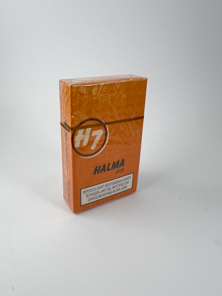 H7 Halma Jaya – tai tradicinis Indonezijos kretek tipo cigarečių pakelis, išsiskiriantis ryškiu oranžiniu dizainu su logotipu „H7“. Ant pakelio pateiktas išsamus aprašymas indoneziečių kalba, kuriame pabrėžiamas aukštos kokybės tabako, gvazdikėlių ir prieskonių mišinys, skirtas išskirtiniam skoniui ir aromatui pasiekti. Apatinėje dalyje pateiktas standartinis įspėjimas apie rūkymo žalą. Akcizo lipdukas viršutinėje pakelio dalyje liudija apie oficialų pardavimą vietos rinkoje.