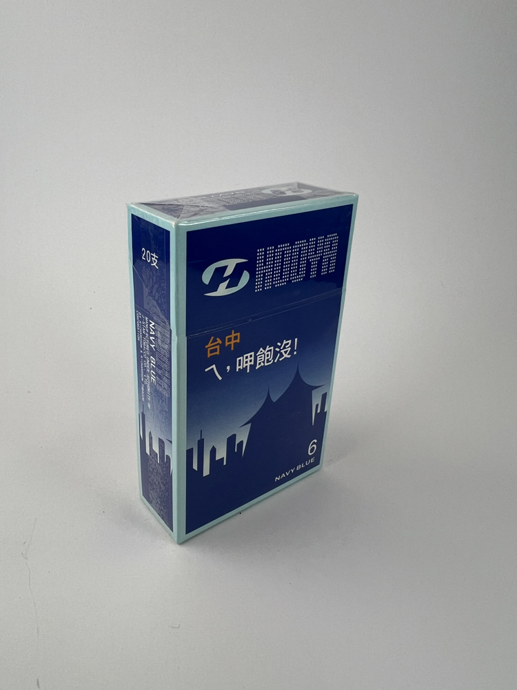 Description: HODNA „Navy Blue” cigarečių pakelis pasižymi išskirtiniu mėlynu dizainu su miesto silueto motyvais bei tradicinės architektūros kontūrais. Pakelio viršuje – logotipas ir prekinis ženklas, o apačioje – skaičius „6“, nurodantis mažesnį dervų ar nikotino kiekį. Ant šonų pateikta papildoma informacija kinų kalba, pakelis estetiškai ryškus ir modernus. Tai vienas iš rečiau matomų pakelių ne Azijos rinkose.
