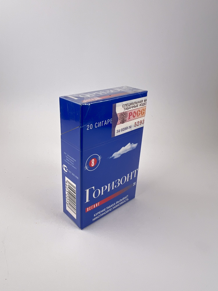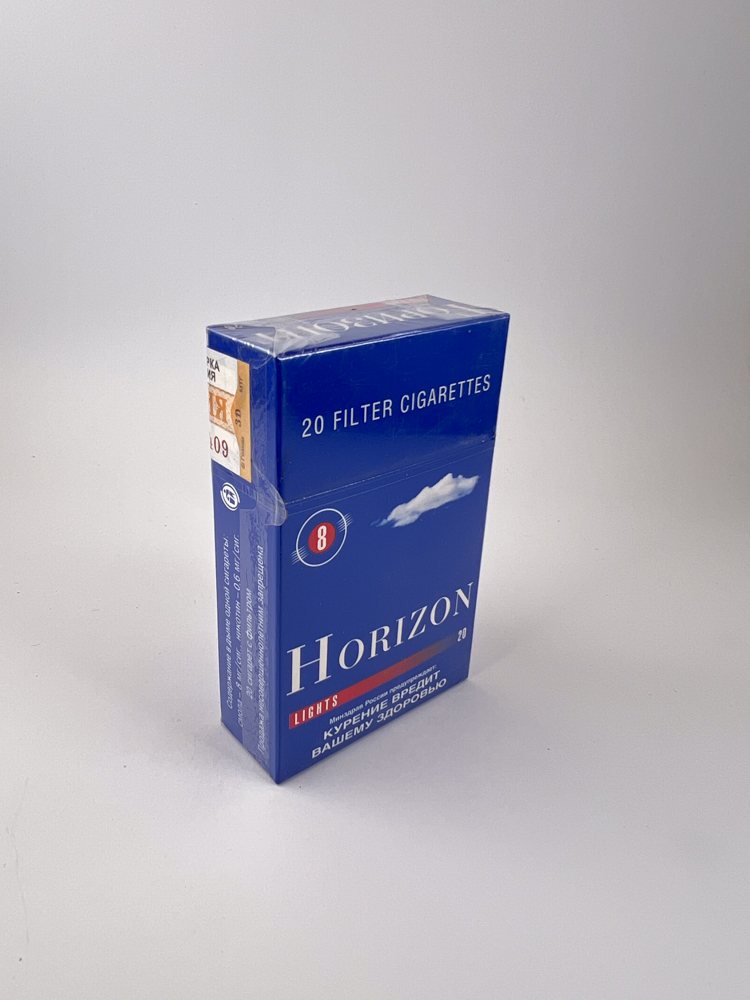 – Historical data and popularity: „Horizon“ buvo viena iš rusiškų markių, bandžiusių sukurti vakarietišką, modernų įvaizdį vietinei rinkai, orientuotą į „lengvesnių“ cigarečių segmentą. Kolekcionieriams šis pakelis įdomus kaip tipiškas pavyzdys vėlyvųjų 1990-ųjų Rusijos tabako dizaino tendencijų.