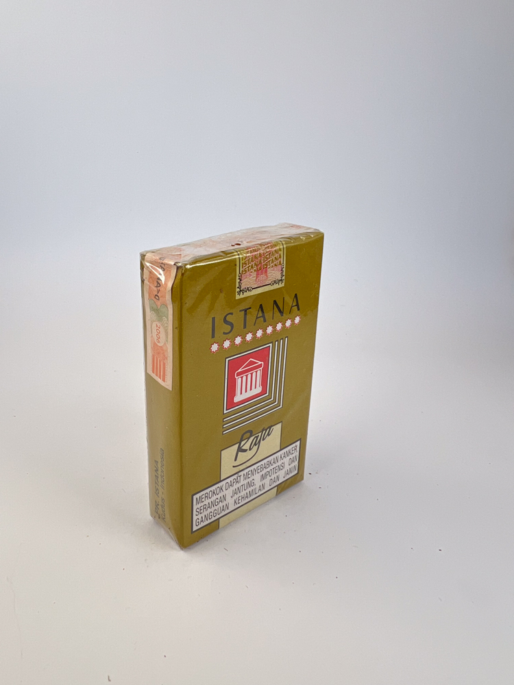„Istana Raja“ – klasikinio dizaino indonezietiškas kretek cigarečių pakelis. Pagrindinis fonas – aukso spalvos, centre vaizduojamas baltas stulpinis simbolis raudoname kvadrate, simbolizuojantis rūmų ar šventyklos motyvą, kuris dera su pavadinimu „Istana“ (indonezietiškai „rūmai“) ir „Raja“ („karalius“). Dizainas išlaiko minimalistinę simetriją – apačioje užrašas „12 Sigaret Kretek“, viršuje – dešimties žvaigždučių juosta, kuri pabrėžia prekinio ženklo prestižo įvaizdį.