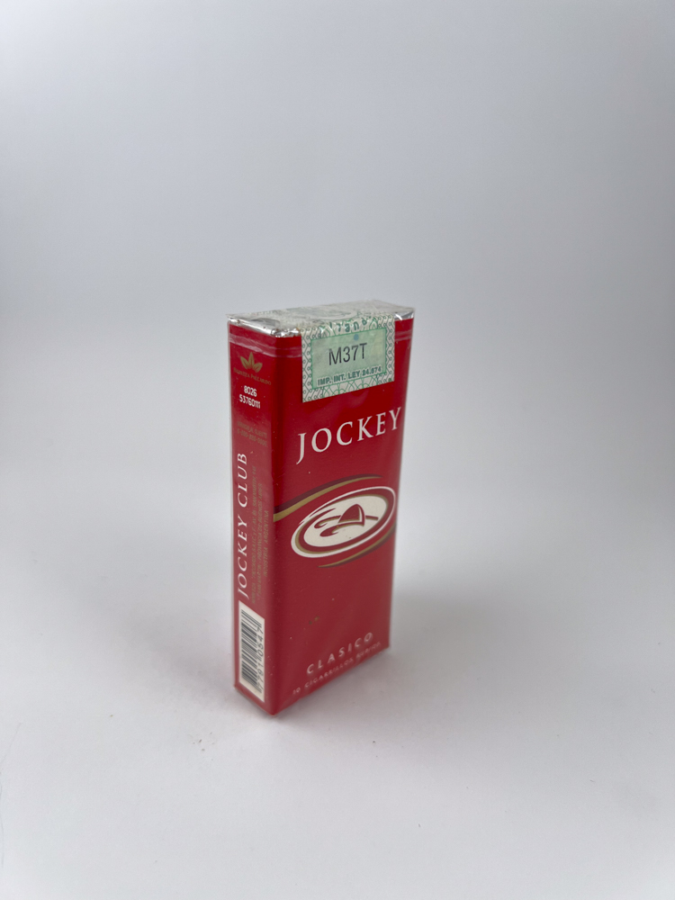 „Jockey Club Clásico“ – vienas iš labiausiai atpažįstamų Argentinos cigarečių pavadinimų, išlaikęs tvirtą vizualinį identitetą. Pakelis išsiskiria intensyvia raudona spalva su subtiliu blizgesiu ir minimalistiniu dizainu. Centre – ovalus logotipas su skrybėlės simboliu, įrėmintas auksiniu apvadu, kuris perteikia klasikinio prestižo įvaizdį.
