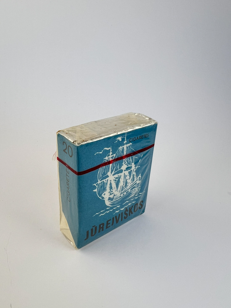 „Jūreiviškos“ cigaretės – tai istorinė produkcija, pagaminta Klaipėdos tabako fabrike sovietmečiu. Pakelis išsiskiria ryškiai mėlynu fonu ir balto burlaivio siluetu, perteikiančiu jūrinę tematiką. Tai buvo vienas iš lokalizuotų lietuviškų ženklų, orientuotų į jūrą ir uostą atspindinčius simbolius. Ant galinės pusės pateikta informacija net šešiomis kalbomis (lietuvių, rusų ir kt.), nurodant rūšį, filtrą bei gamybos vietą – tai būdingas daugianacionaliniam SSRS produktui bruožas. Vizualiai pakelis labai tvarkingas, su celofanu ir aiškiai įskaitomais užrašais.