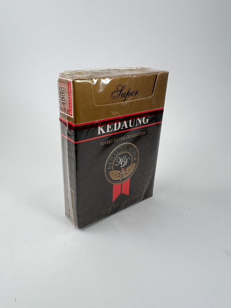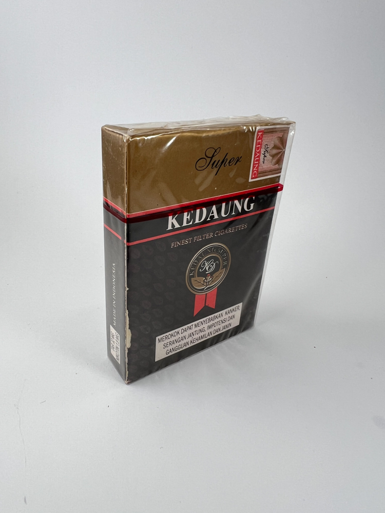 Kedaung Super – tai indonezietiškos kilmės cigaretės, išsiskiriančios tamsaus ir prabangaus dizaino pakeliu. Viršutinė dalis auksinė, o pagrindas juodas su subtiliu tabako lapų fonu ir dekoratyviniu logotipu centre. Ant pakuotės aiškiai pažymėtas pavadinimas „Super“ ir nurodoma, kad tai aukščiausios kokybės filtro cigaretės („Finest Filter Cigarettes“). Įspėjimas apie rūkymo žalą pateiktas indoneziečių kalba, o viršuje – matomas raudonas akcizo lipdukas, patvirtinantis autentiškumą.