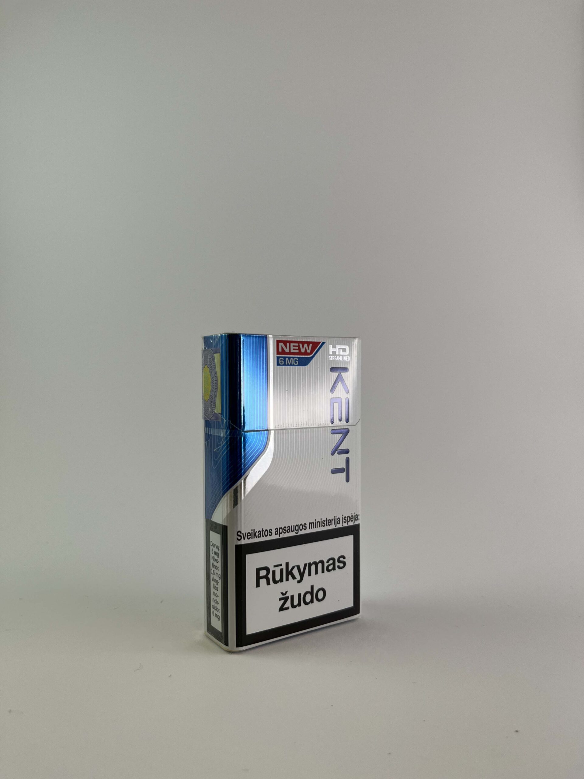 Description: This Kent cigarette pack with the HD Streamlined design has a modern and advanced look, in line with the Kent brand image. The main side features the Kent logo along with the words "NEW 6 MG", which may indicate a new product variant or reduced strength. The pack also carries a warning about the health risks associated with smoking.