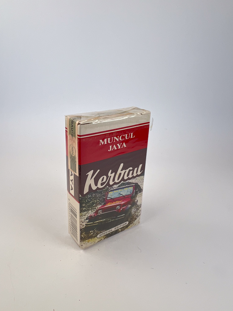 Tai Indonezijos gamintojo „Muncul Jaya“ išleistas „Kerbau“ cigarečių pakelis, priklausantis kretek (gvazdikinių) segmentui. Dizainas išlaiko tradicinį raudonos ir rudos spalvų derinį, kuris vizualiai siejamas su stipriu, klasikinio tabako įvaizdžiu. Pavadinimas „Kerbau“ (liet. „buivolas“) simbolizuoja ištvermę ir jėgą – vertybes, dažnai naudojamas Indonezijos tabako produktų rinkodaroje. Ant pakuotės aiškiai pažymėtas užrašas „Special Edition“, o galinėje pusėje pavaizduotas raudonas visureigis, išryškinantis sportišką ir šiuolaikišką leidimo charakterį.