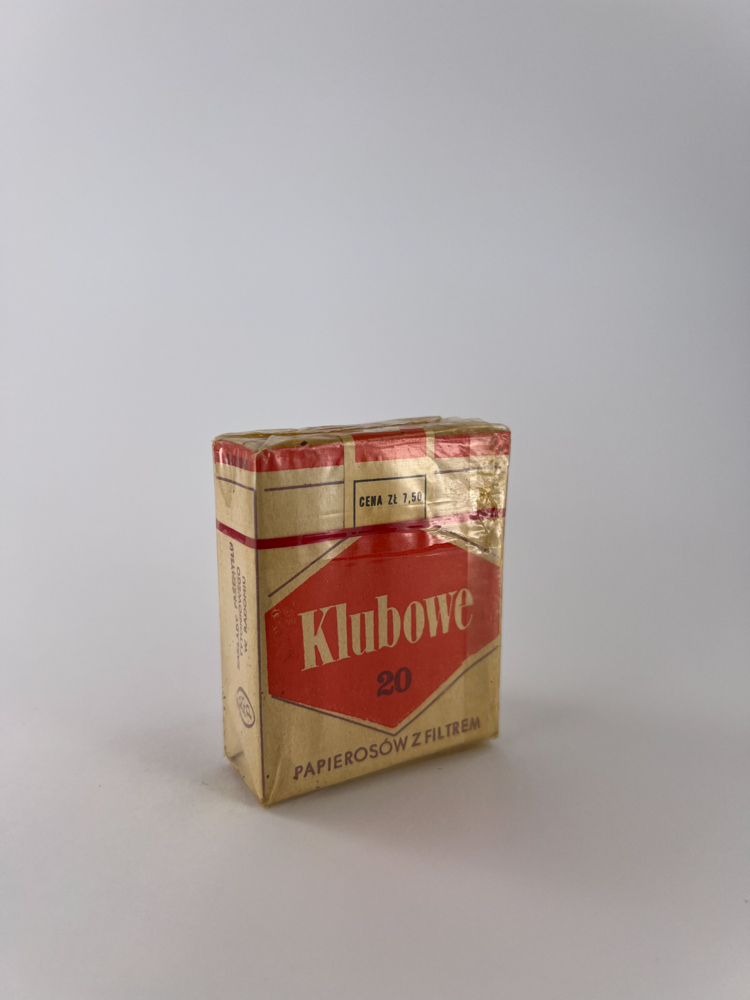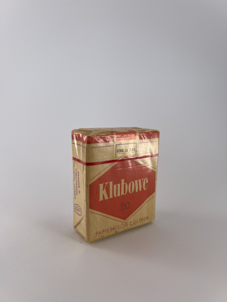 „Klubowe“ – tai vienas iš klasikinių komunistinės Lenkijos laikotarpio cigarečių prekės ženklų. Šis pakelis išlaikė autentišką dizainą: raudonos spalvos šešiakampis logotipas baltame fone, tipiškas laikmečio grafiniam stiliui. Ant viršutinės dalies matoma spausdinta kaina „Cena zl 7,50“, būdinga kainodarai prieš reformą. Pakuotė išlaikyta originaliame celiofane, šoninėse pusėse pateikta informacija lenkų kalba.