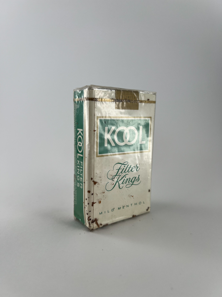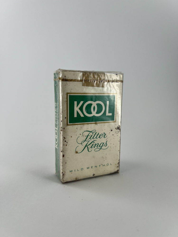 KOOL is one of the oldest and most recognizable menthol cigarette brands, launched in 1933. This Filter Kings edition is a classic version for those who preferred a milder menthol flavor (Mild Menthol). The packaging features the typical greenish design with a white background and the KOOL logo with overlapping "O" letters. This particular pack visually falls into the 1970s-1980s aesthetic.
