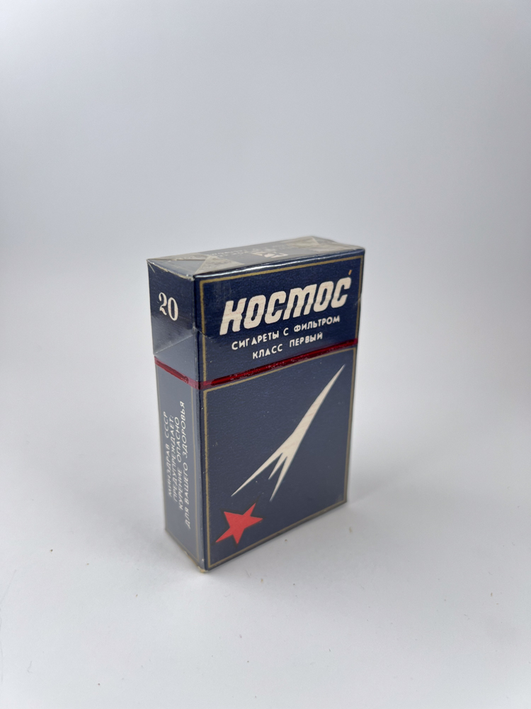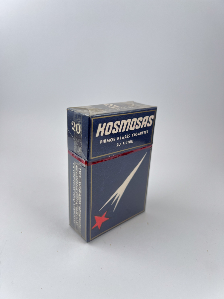 – Historical data and popularity: „Kosmosas“ – vienas žinomiausių Vilniaus tabako fabriko produktų, gamintas kaip „pirmos klasės“ cigaretės SSRS rinkai. Pakelis buvo eksportuojamas į kelias sovietines respublikas, todėl egzistuoja keli kalbiniai variantai. Ši versija su lietuvių ir rusų kalbomis yra kolekcininkų vertinama dėl nacionalinės kilmės ir dvikalbio dizaino.