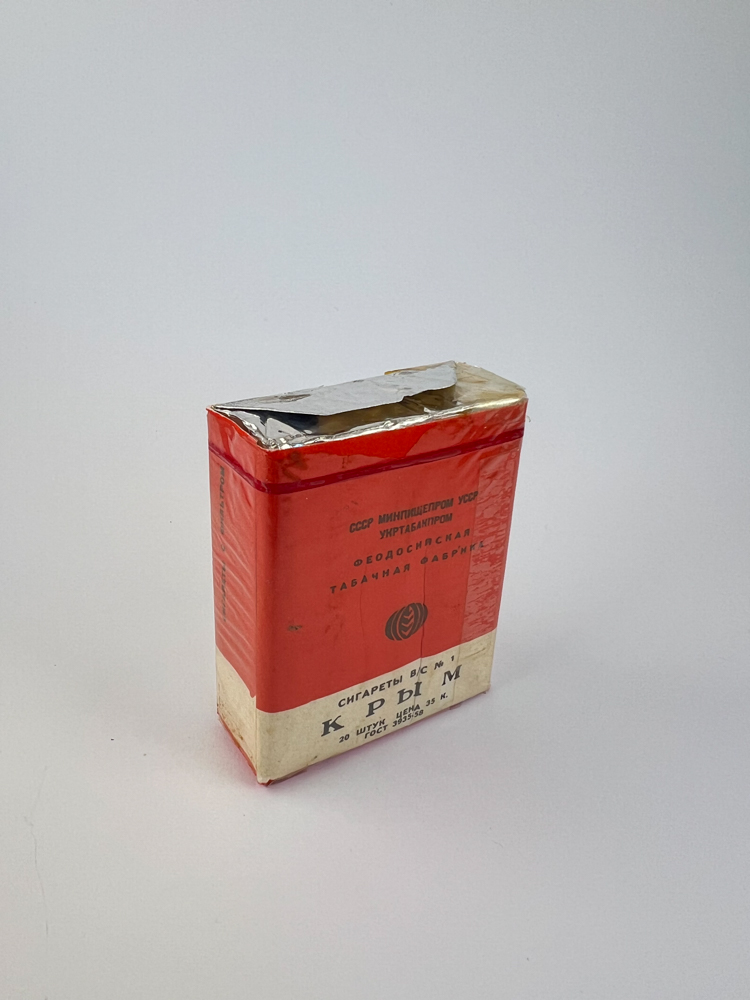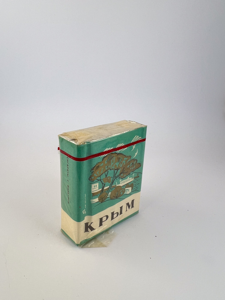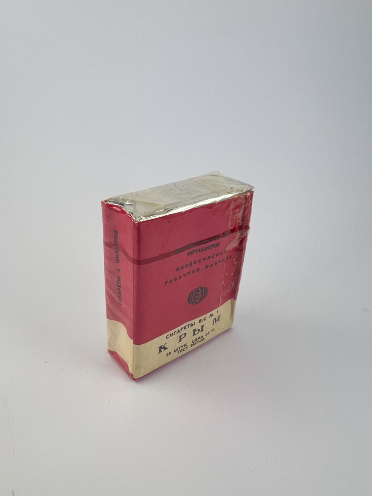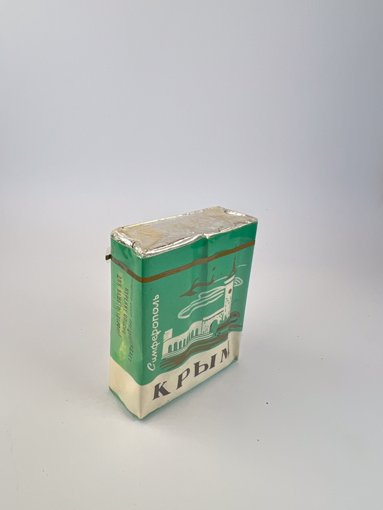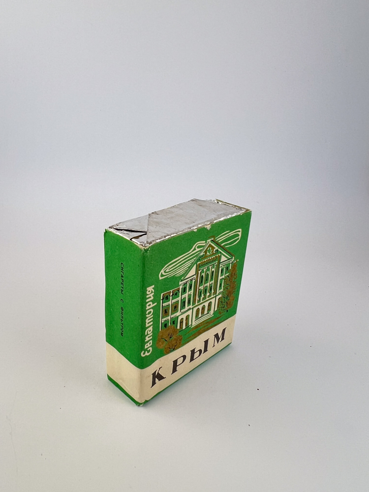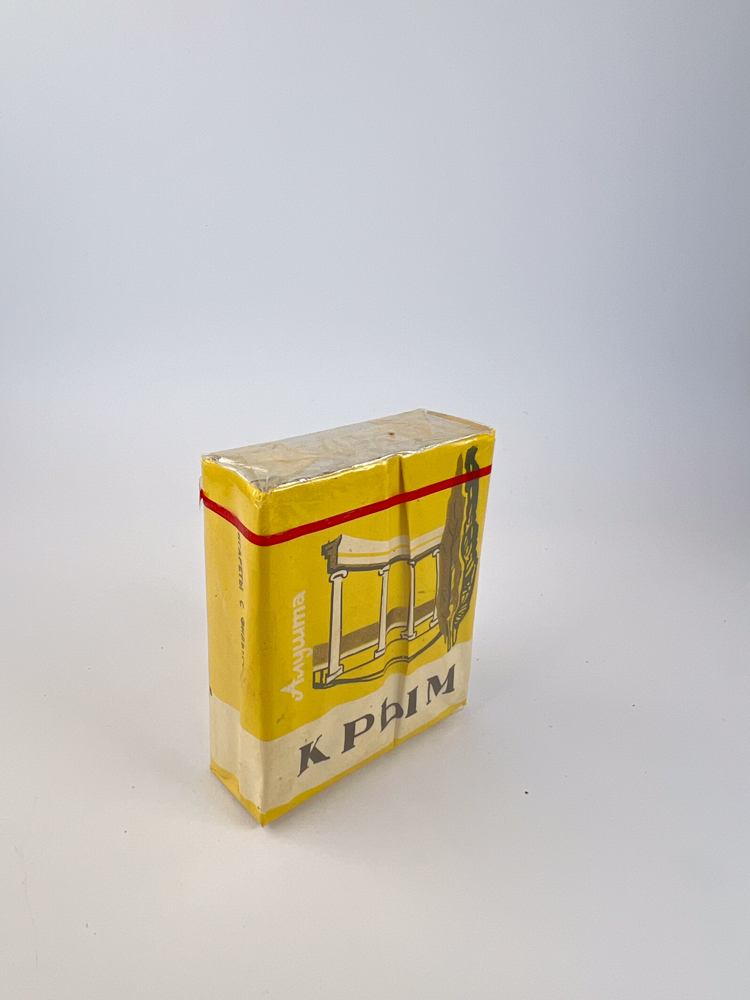 Historical data: Krym cigarettes were produced during the USSR and the subsequent transitional period, when series with regional motifs were often released. Such packs reflected local architecture, resorts and nature, as Crimea was an important tourist region. At the end of the 20th century, such series were used as a visual representation and are today valued by collectors for their thematic integrity and regional symbolism.