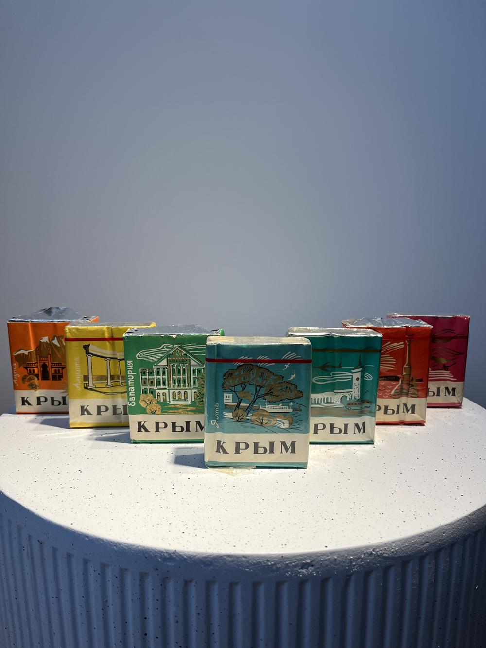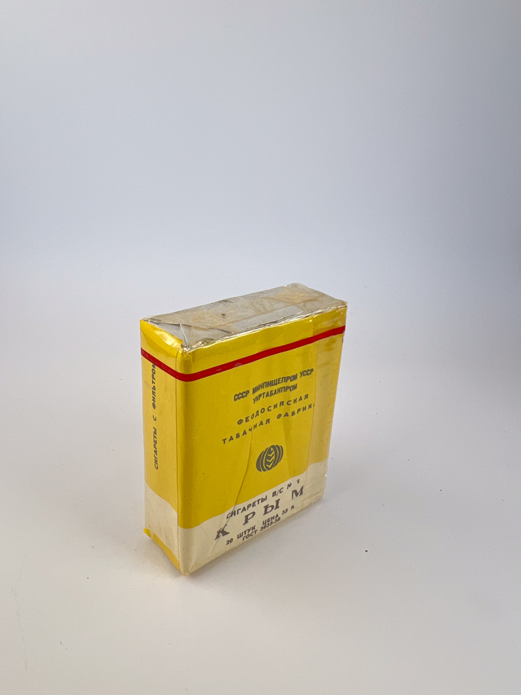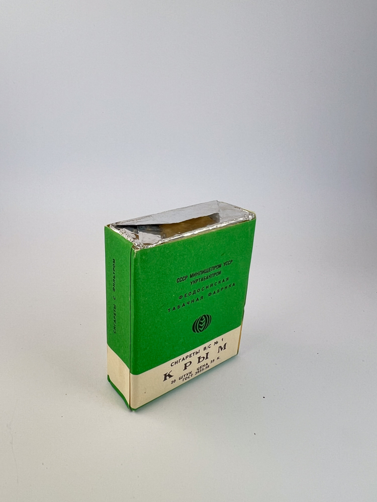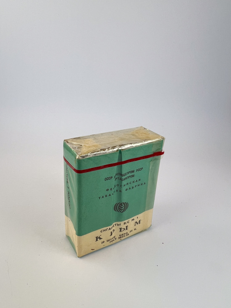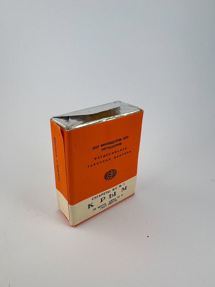 Historical data: Krym cigarettes were produced during the USSR and the subsequent transitional period, when series with regional motifs were often released. Such packs reflected local architecture, resorts and nature, as Crimea was an important tourist region. At the end of the 20th century, such series were used as a visual representation and are today valued by collectors for their thematic integrity and regional symbolism.