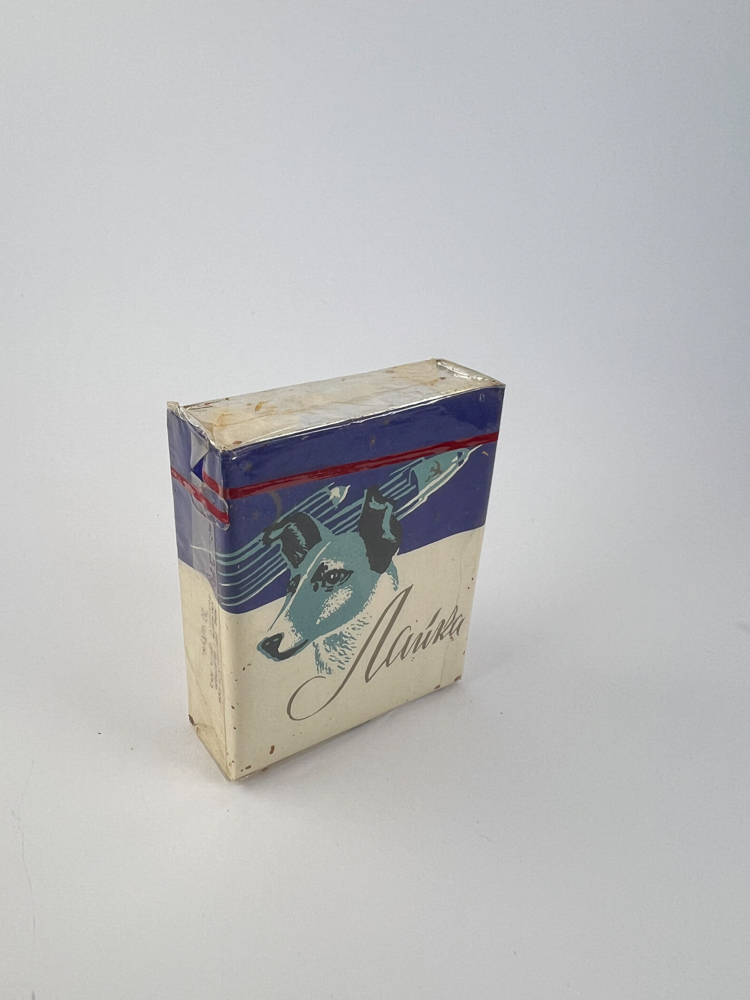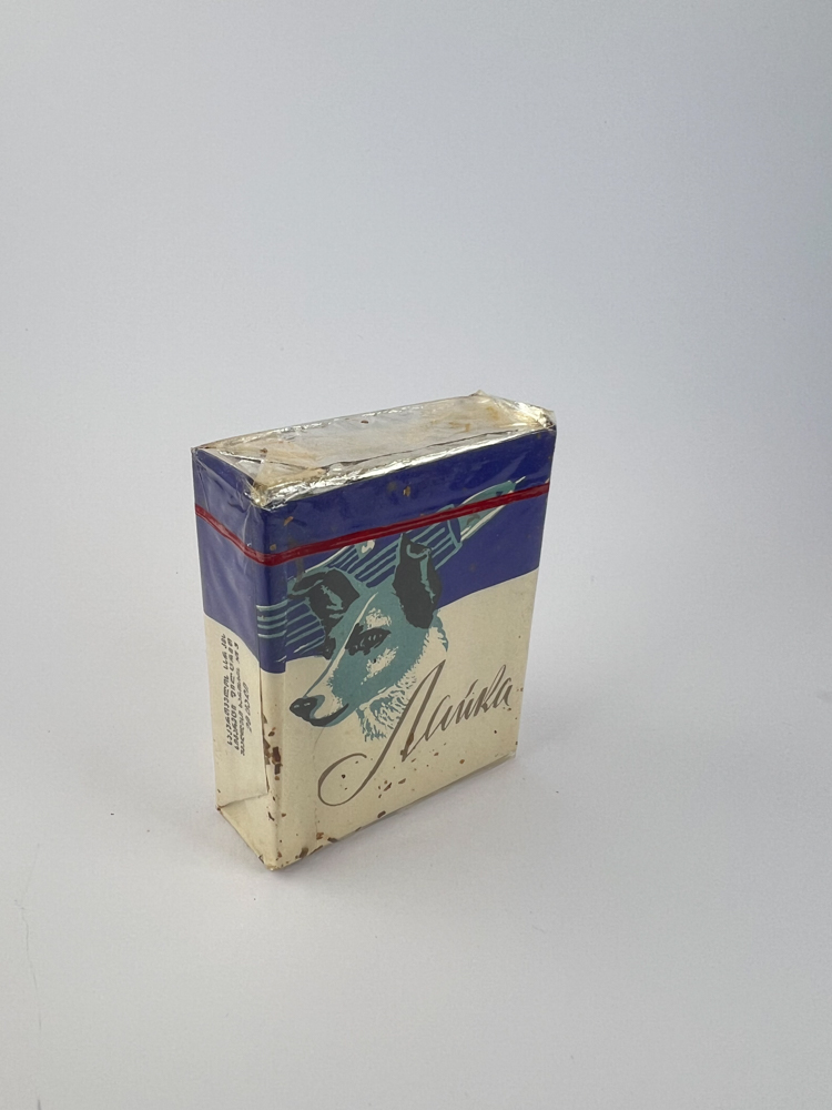 „The Laika cigarette pack is named after the first dog to fly in space – Laika, who became a symbol of the Soviet space program. The design of the pack visually replicates this event – the top background depicts a rocket with dynamic lines, and the bottom – a portrait of a dog. The blue-red-white color combination reinforces the historical and propaganda narrative of the Soviet achievement. This is an extremely rare thematic pack, which has a clear connection with the space achievements of the late 1950s.