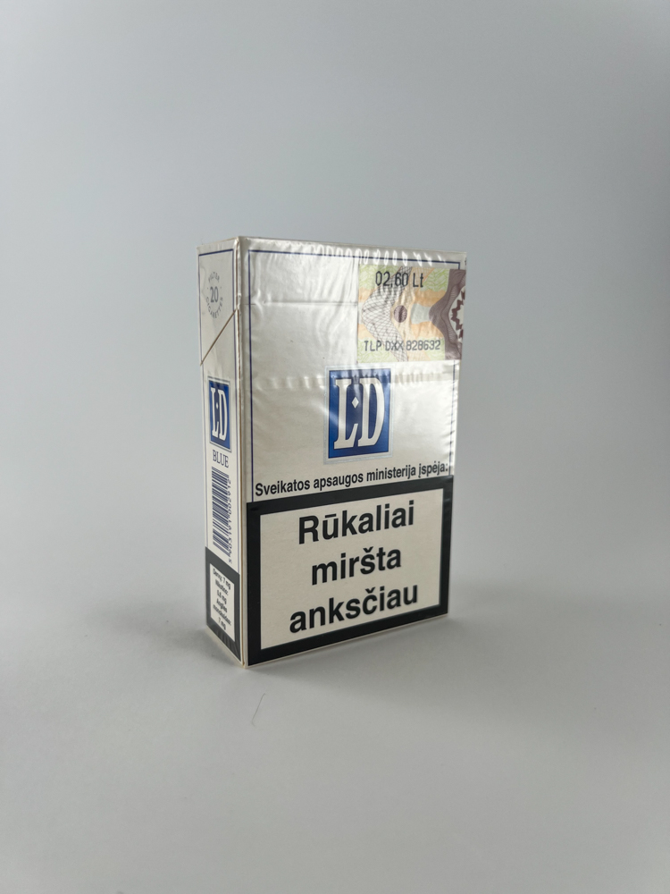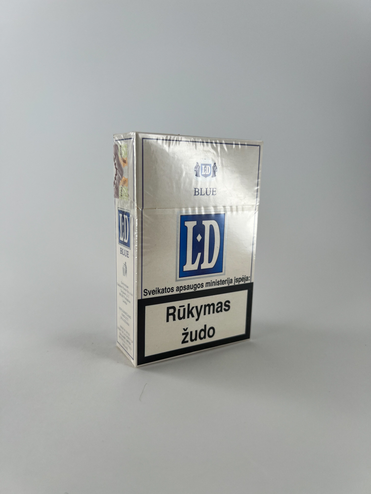 LD Blue – tai klasikinės stiprumo cigaretės su moderniu, minimalistiniu dizainu. Pakelis pasižymi šviesiai sidabriniu fonu, mėlynos spalvos logotipu ir aiškiu įspėjimu apie rūkymo žalą lietuvių kalba („Rūkymas žudo“, „Rūkalai miršta anksčiau“). Ši versija buvo parduodama Lietuvoje, kaip rodo nacionalinis akcizo lipdukas su litų valiuta. Tai gana tipiškas to meto „budget“ segmento gaminys, tačiau šiandien jis įdomus kolekcionieriams dėl pereinamojo laikotarpio dizaino ir istorinės vertės.