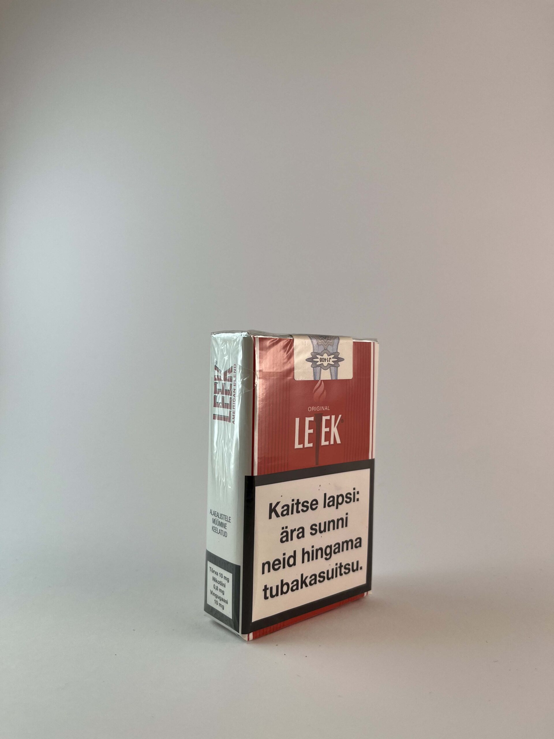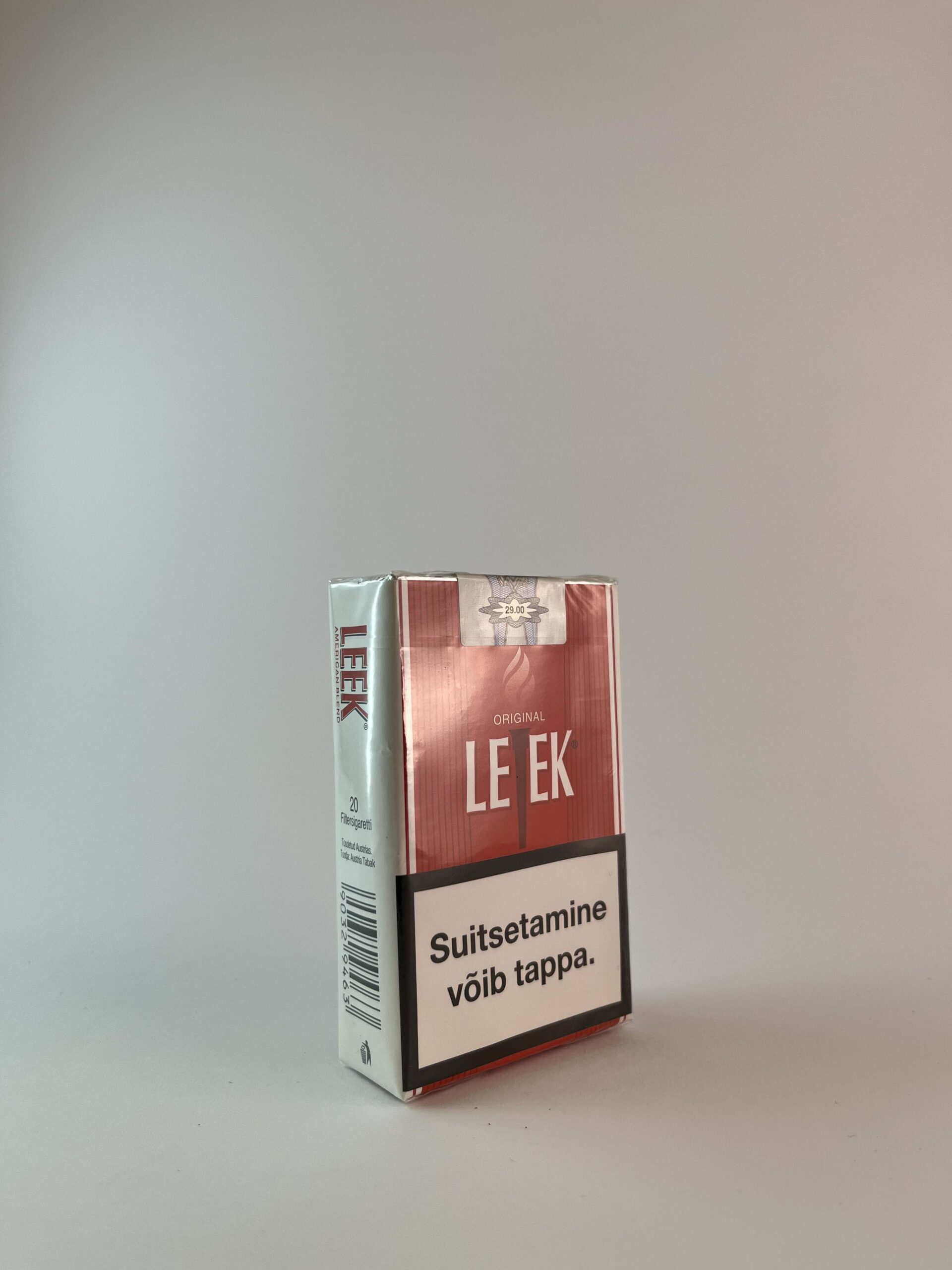 Description: The LE EK Original cigarette pack stands out for its minimalist yet subtle design. The combination of red and white gives the aesthetics of classic tobacco products. The inscription "LE EK" in the middle of the pack with the crown symbol conveys elegance. Warnings about the harm of smoking are visible and meet modern legal requirements.