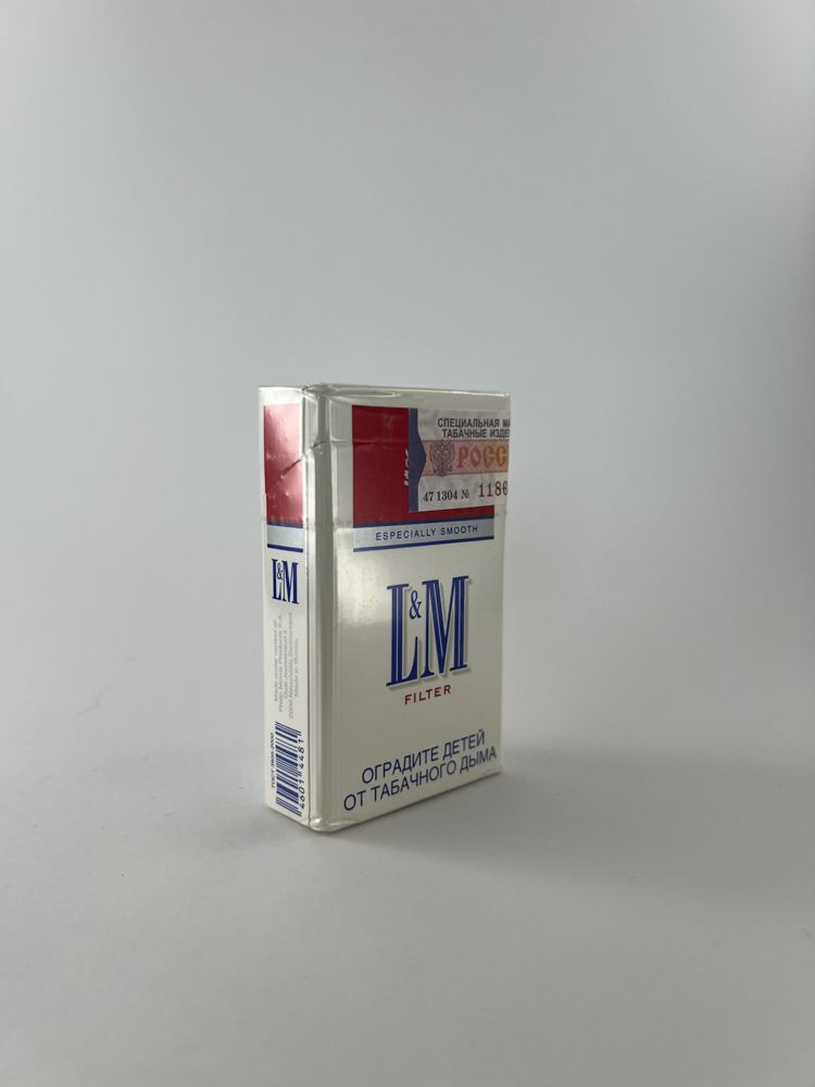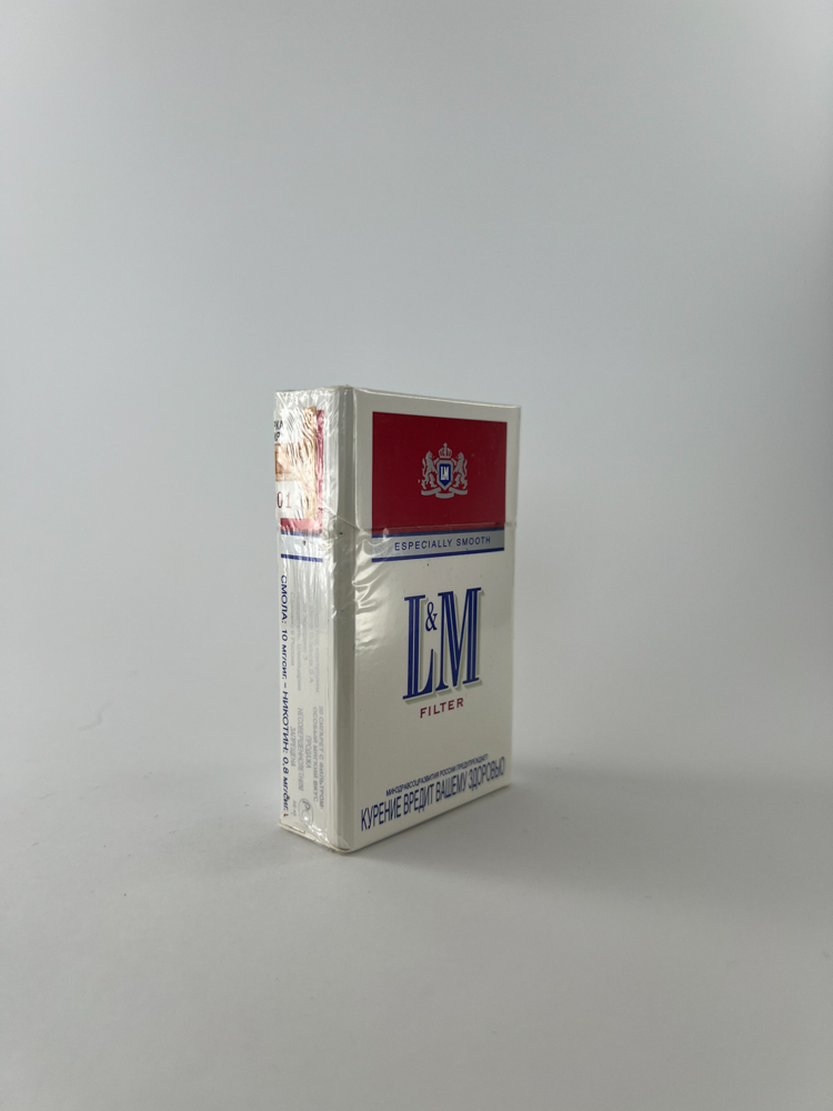 This is a classic L&M cigarette pack with the additional inscription "Especially Smooth", which indicates a smoother flavor profile. The pack features the traditional L&M emblem, and the design is white with red-blue accents - clean, strict and intended to convey a sense of reliability. The pack is made for the Russian market, with the usual Russian excise mark used at that time. On the front and sides - warnings about the harm of smoking to children and health. The pack is in its original cellophane packaging, undamaged.