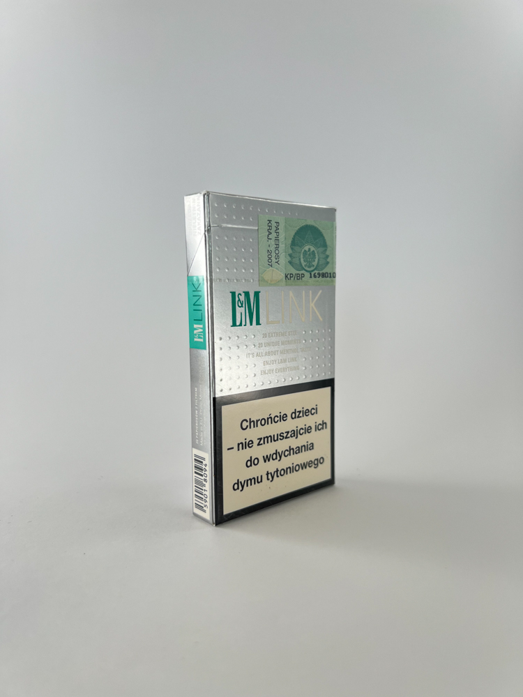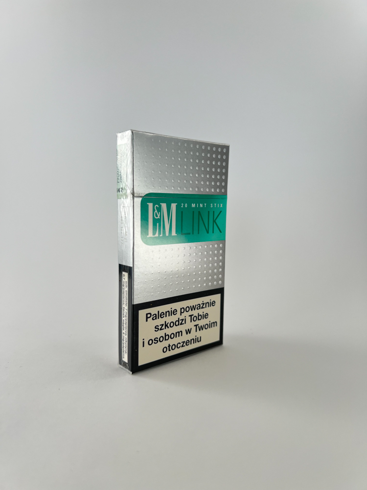 This edition of L&M Link Mint Stix is a modern aesthetic aimed at a younger, more stylish audience. The pack features a silver background with dotted patterns on the top and mint green accents. The minimalist design with the slogan "It's all about menthol style" emphasizes the freshness and style that was very fashionable at the time. This edition is one of Philip Morris International's experimental products, the marketing of which was oriented towards "technologically advanced" and individualistic consumers.