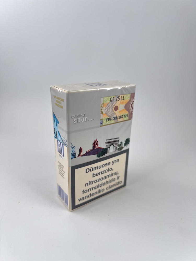 Kairėje pusėje – „L&M One“ įrašas, žymintis lengviausią L&M tabako mišinį.