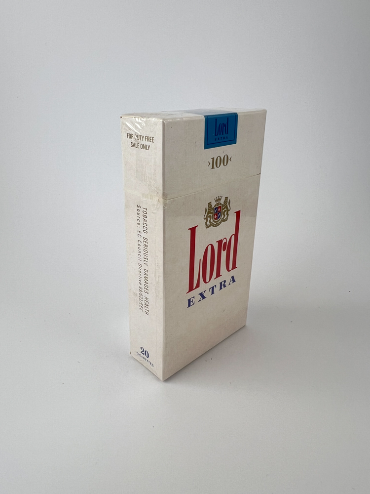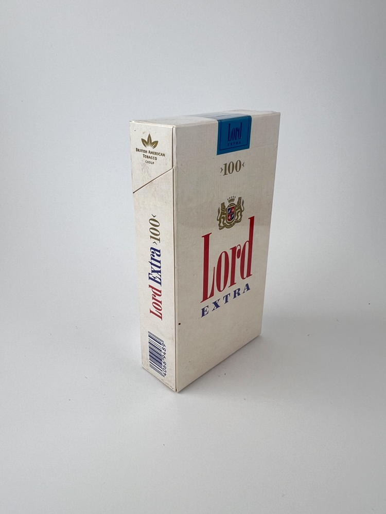Historical data and popularity: Lord cigarettes were quite widespread in Eastern and Central European markets. The "Extra 100s" variant was often intended for export and Duty Free trade, and is therefore less common than the regular editions.