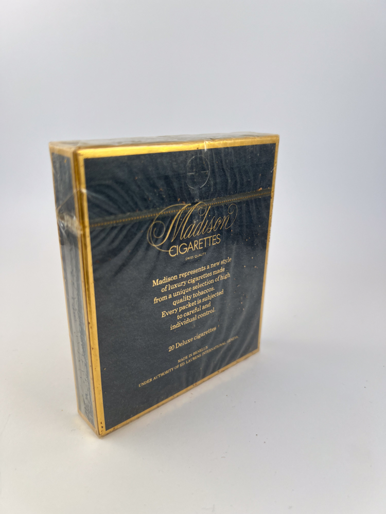 • Collectible value: Medium-High. Madison is a rarer brand that existed for a limited time and was sold mainly in Western European markets, especially Switzerland and the Benelux countries. Due to its limited distribution and small number of surviving copies, this pack is considered valuable among collectors interested in luxury European cigarette designs.