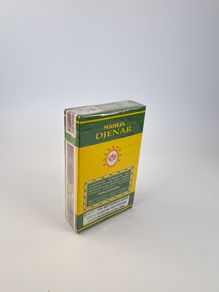 Collectible Value: Medium to High. Mahesa Djenar is a smaller producer but an authentic product from the Kudus region of Java, considered the birthplace of kretek cigarettes. The pack has ethnographic value as it represents classic Indonesian tobacco design from the late 20th century.
