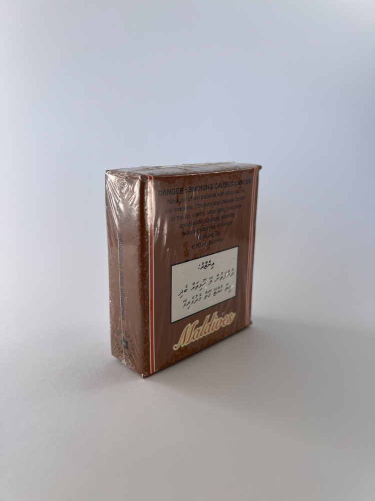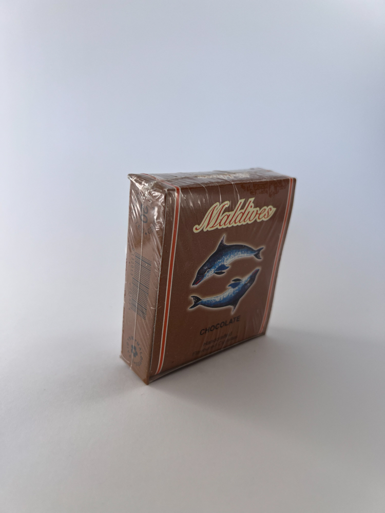 This is another exclusive exotic package from the Maldives series, this time with chocolate flavor cigarettes. The package is decorated with two dolphins and the background is brown, clearly associated with the chocolate theme. As with other packages in the Maldives series, there is a warning about the dangers of smoking in English and the local Dhivehi language. The tar and nicotine content is indicated - 14.95 mg Tar / 0.80 mg Nicotine, indicating a stronger profile, regardless of flavor orientation. The lower part is marked: „Handcrafted Flavored Cigarettes“, which gives the path even more uniqueness.