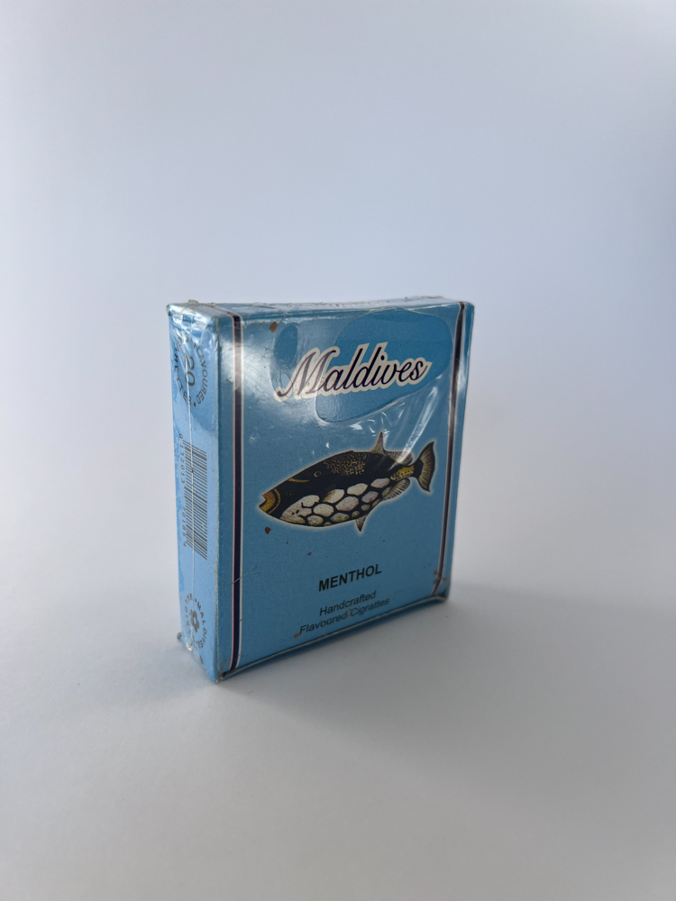 Collectible value: Above average. The exotic origin (Maldives), flavor variant (menthol), local language, and tropical-themed design make this pack particularly interesting for collectors interested in themed sets.