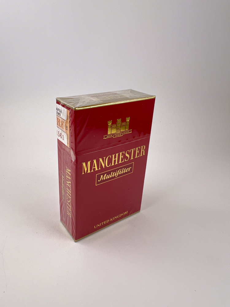 Pagrindinis užrašas MANCHESTER parašytas didžiosiomis auksinėmis raidėmis, o po juo – „Multifilter“ stilingame rėmelyje.
