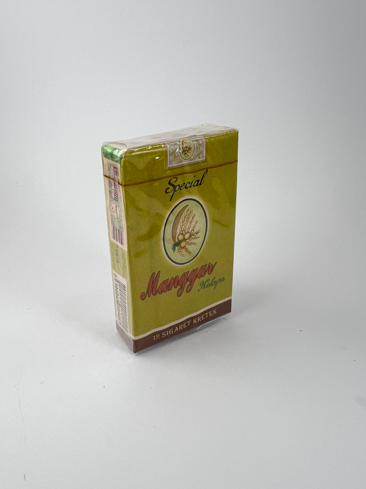 Pakuotė ružavos–rudos geltonos spalvos su žalios ir raudonos deriniais. Centre – logotipas su kokosų palmėmis ir augalų motyvais, viršuje užrašas Special, centre – „Manggar Kelapa“. Apačioje „12 Sigaret Kretek“. Sveikatos įspėjimas pateiktas indonezų kalba. Iš šono matyti tikslios tar/nikotino reikšmės, nors neaiškios iš nuotraukų. Dizainas minimalistinis ir tradicinis kretek tematikai.