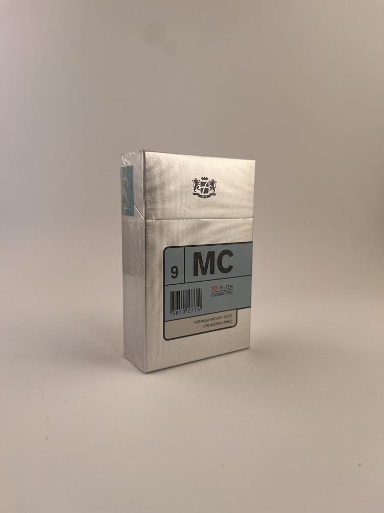Tai minimalistinio dizaino MC 9 Blue cigarečių pakelis, gamintas Kroatijos tabako fabrike TDR Rovinj. Šis modelis buvo švelnesnė serijos „MC“ versija, atpažįstama iš šviesiai mėlynos spalvos akcentų.