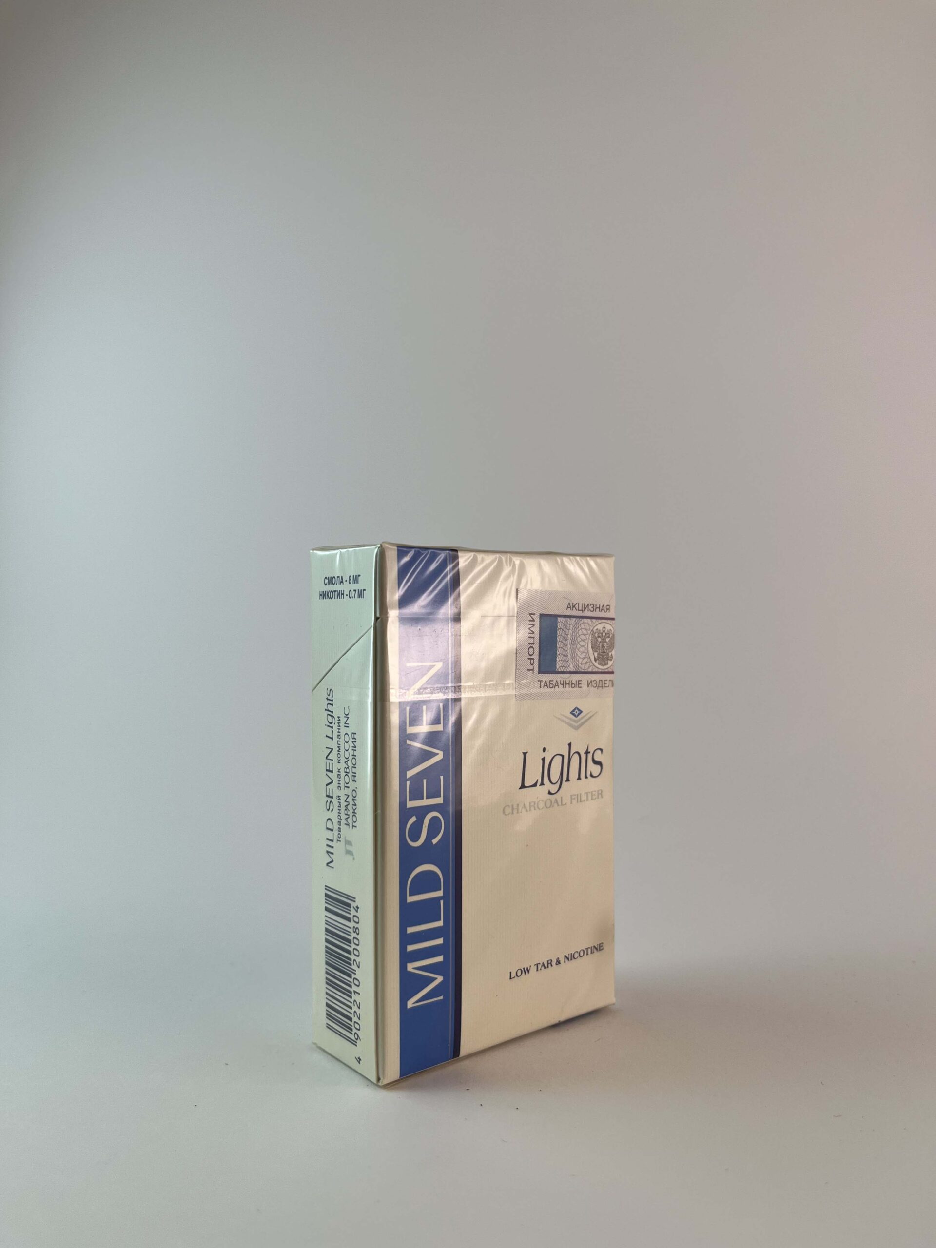 „Mild Seven Lights is known for its subtle light blue and cream color palette, which conveys a sense of lightness and cleanliness. The pack features a minimalist logo and a Japanese design aesthetic. This edition features a carbon filter that enhances the smoking experience, and a health warning in multiple languages. Mild Seven is one of the most popular cigarette brands in Asia, known for its quality and unique taste.