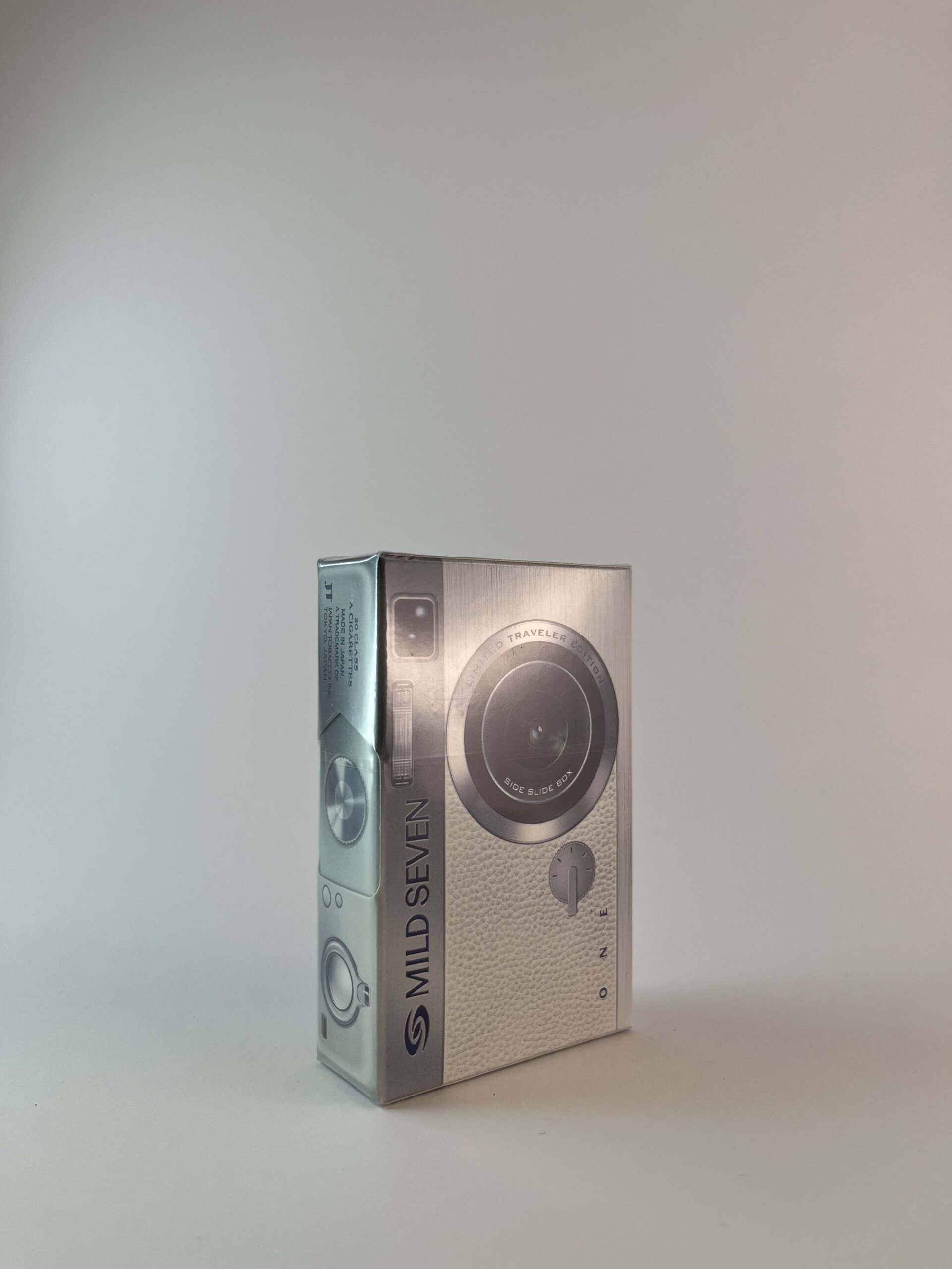 Description: Mild Seven „Limited Traveller Edition” stands out with its elegant and innovative design, reminiscent of the aesthetics of a camera. The silver-colored surface combined with detailed lettering and minimalist lines gives the impression of luxury and modernity on the go. This limited edition package is designed for travelers and collectors who value both distinctive style and high quality.