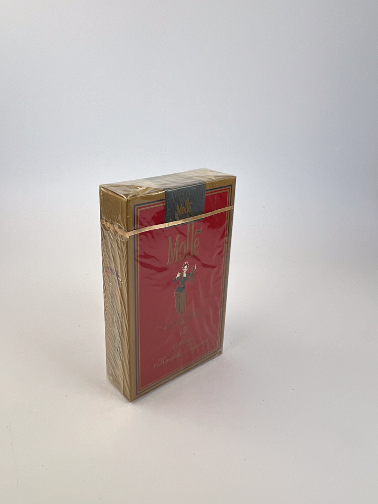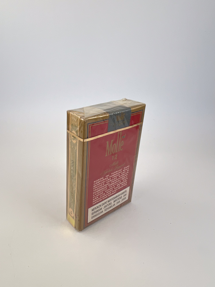 Collectible value: Aukšta. „Mollé“ nėra masinės gamybos ženklas – jis priskiriamas prie labiau „boutique“ tipo kretek, orientuotų į stilingą vartotoją. Raudonai auksinis dizainas, gerai išsilaikiusi pakuotė ir unikalus logotipas daro šį pakelį išsiskiriantį net tarp Indonezijos kolekcinių variantų.