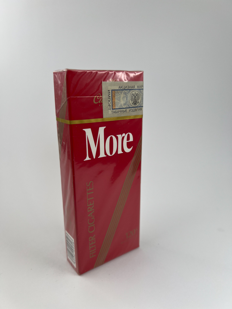 • Historical data and popularity: „More was introduced as a longer, thinner and more elegant cigarette, aimed primarily at women. This format has become popular in the US, Russia and some Asian countries. The design reflects the classic More packs of the early 2000s.