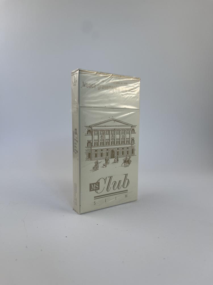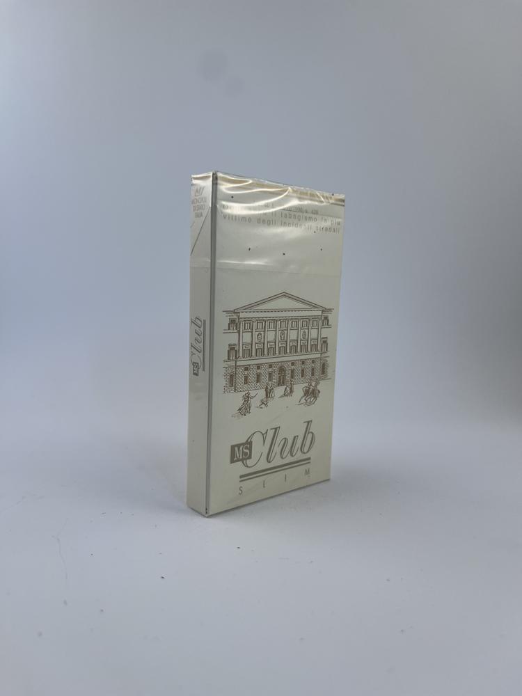An inscription is visible on the side MS Club Slim, and a warning in Italian at the top. The cellophane is intact, highlighting the original preservation.