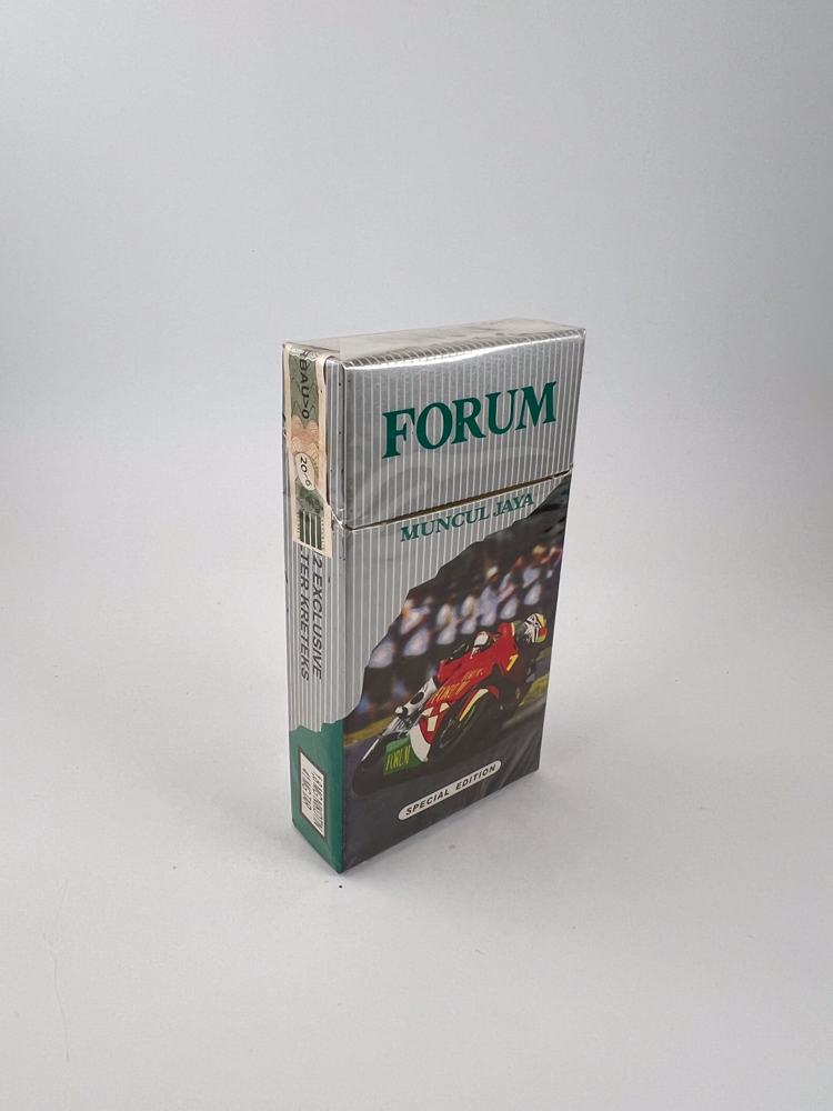 Tai itin įdomus „Muncul Jaya Forum Special Edition“ leidimas, dedikuotas motociklų sportui. Ant priekinės pusės pavaizduotas lenktyninis motociklininkas ant trasos, su naktinių žibintų fone sukurta dinamine atmosfera. Šis dizainas perteikia greičio, energijos ir modernumo idėją, kuri buvo neįprasta tradiciniams kretek cigarečių gamintojams iš Centrinės Javos.