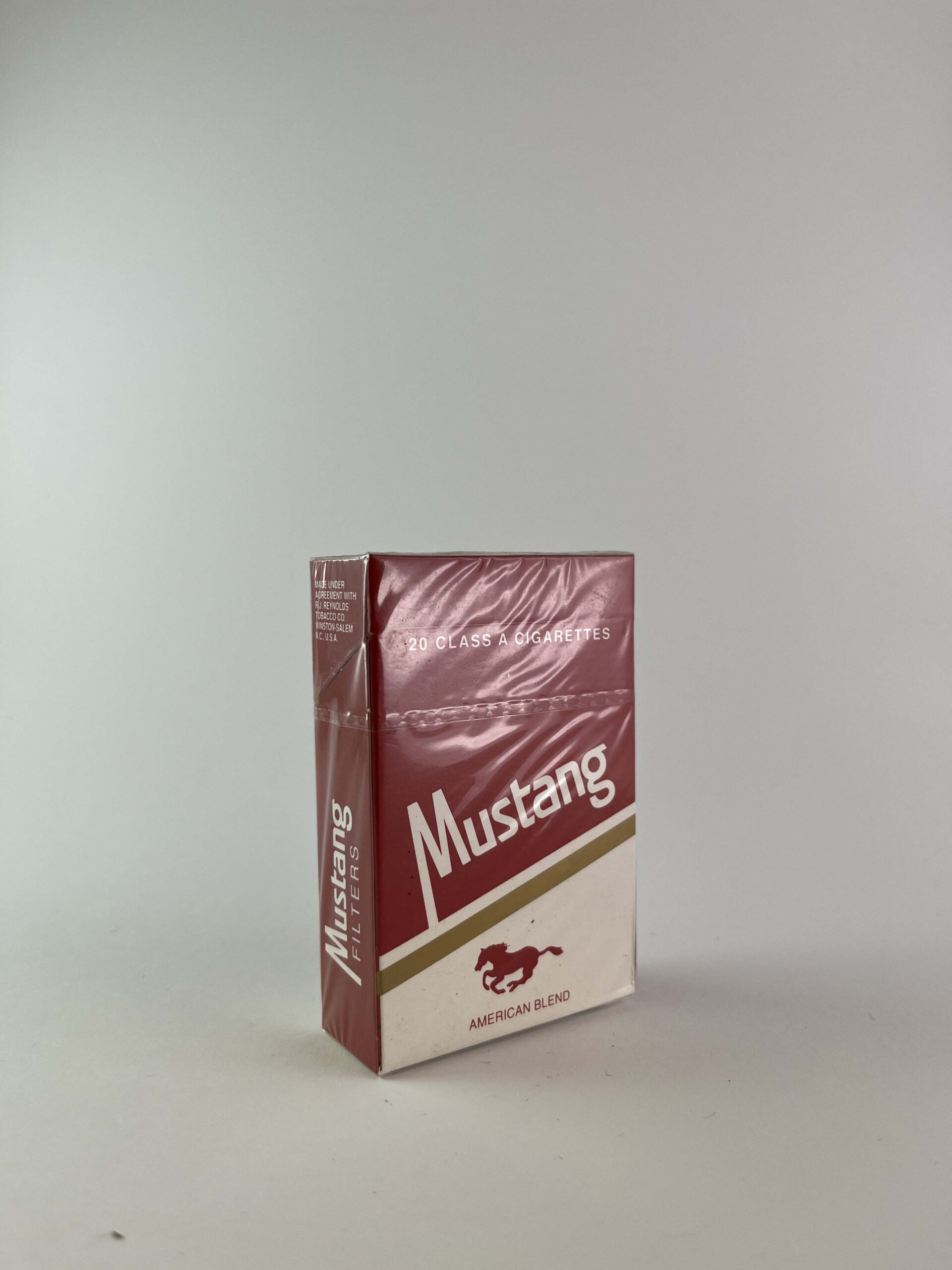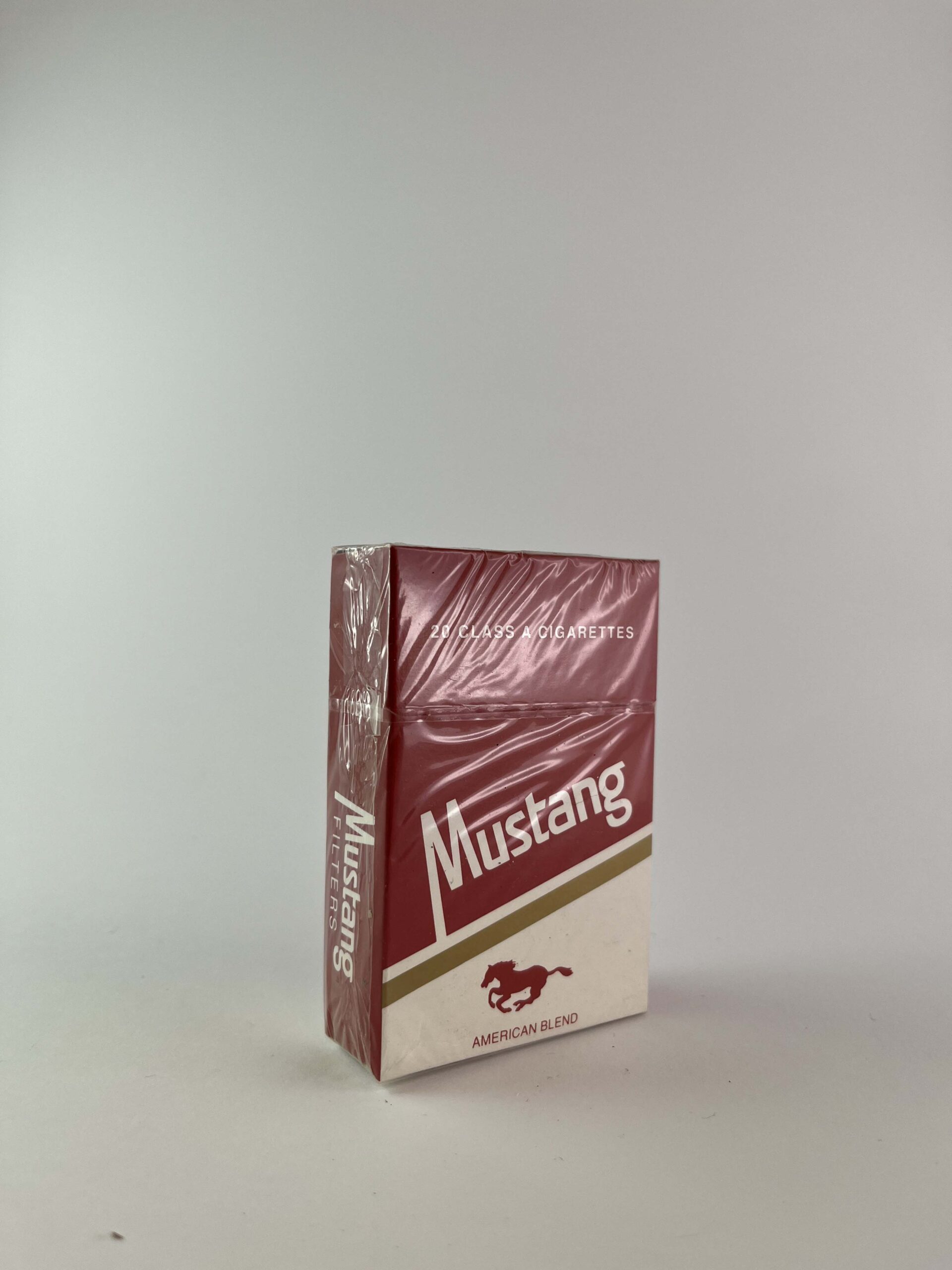 Description: This Mustang cigarette pack has a simple but striking design, dominated by red with gold stripes and a horse logo. It reflects the image of American style and a determined character. The Mustang brand is known for its reliable quality, and the American Blend emphasizes a strong and rich taste that may appeal to those who appreciate tradition.